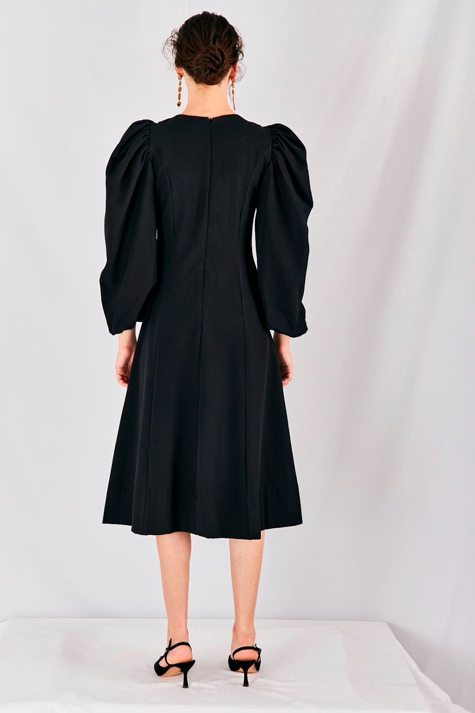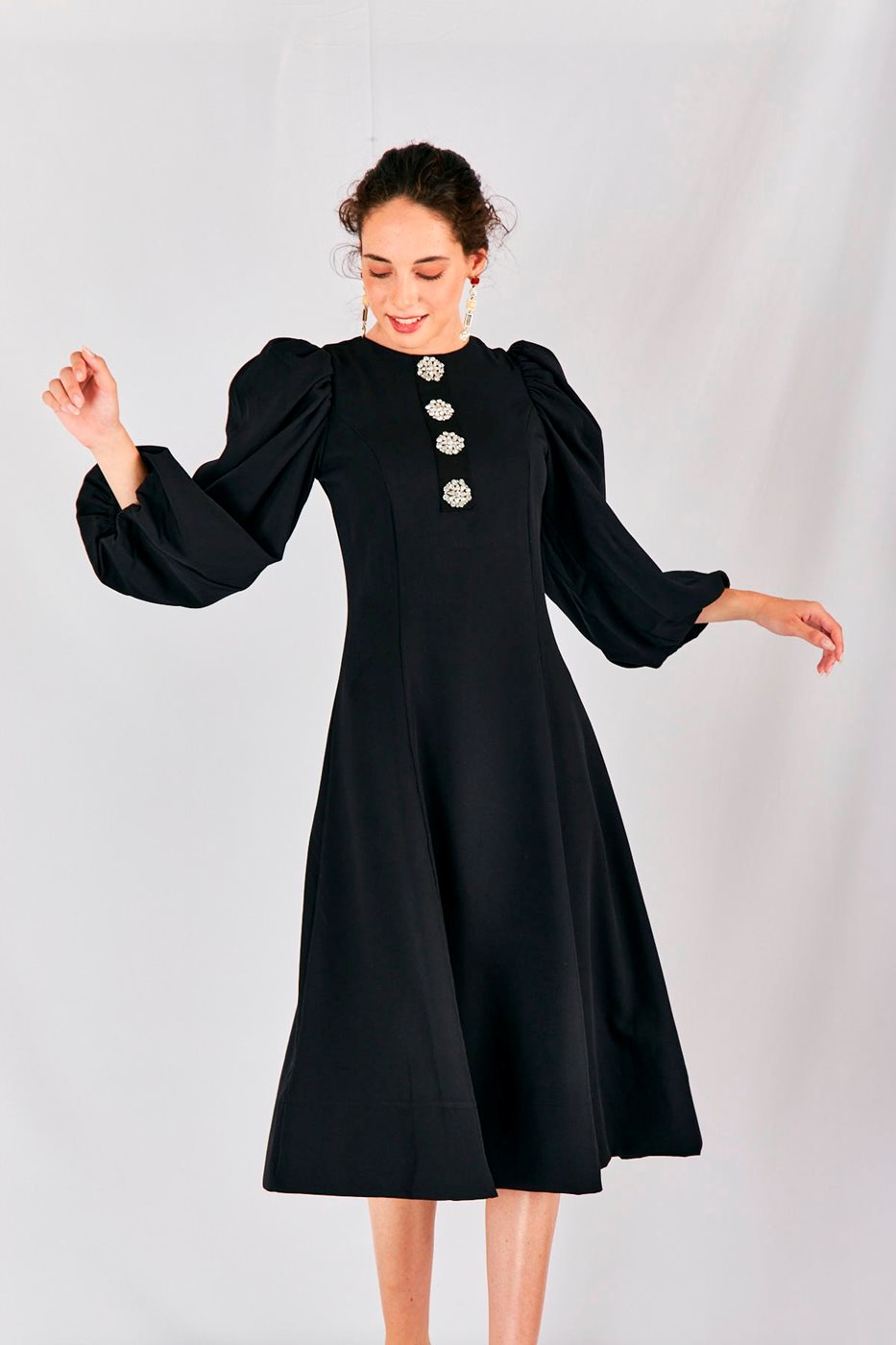 שמלת שרוולים תפוחים ויהלומים שחור