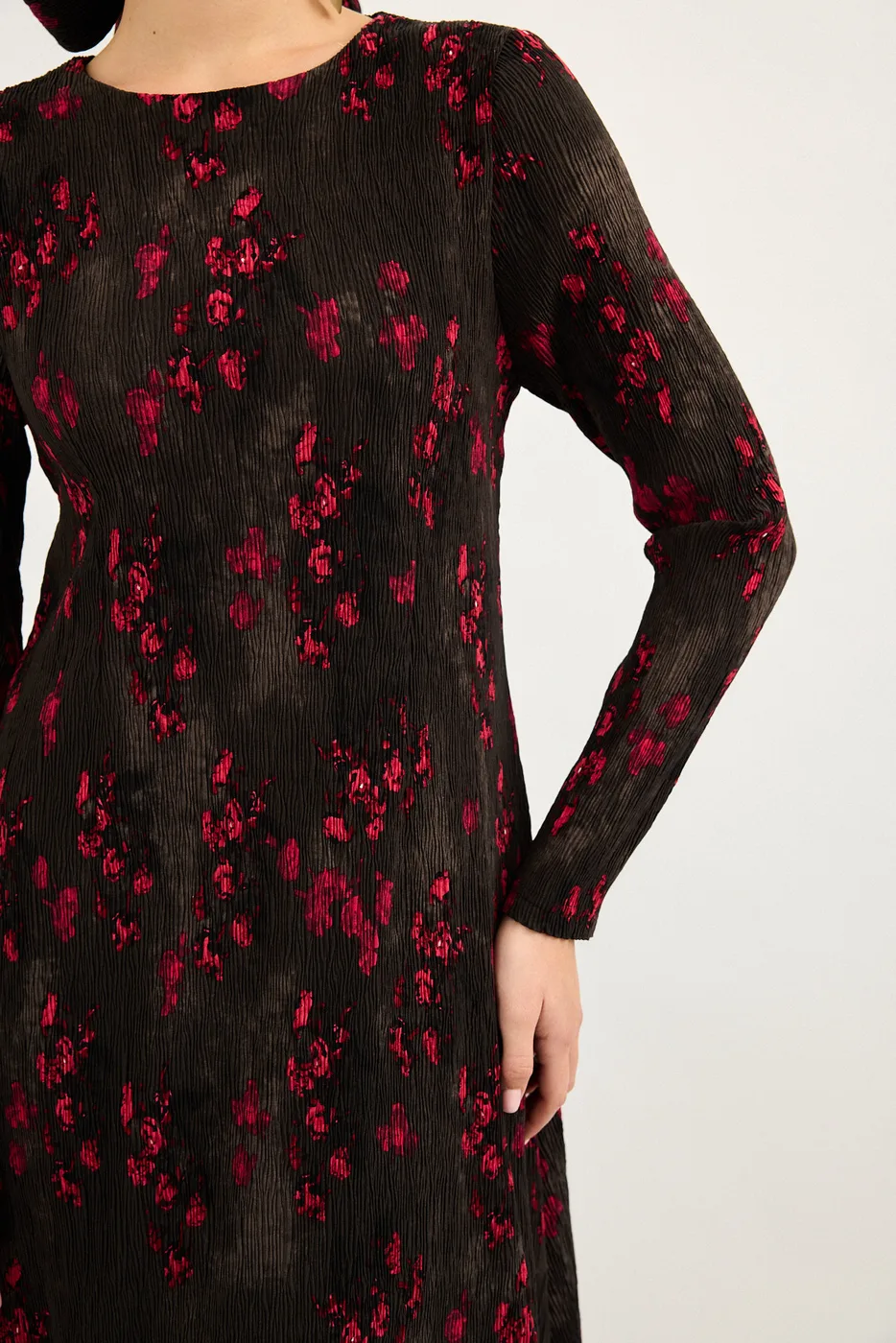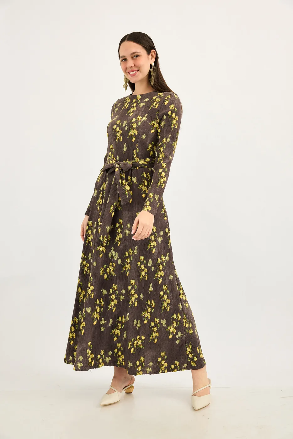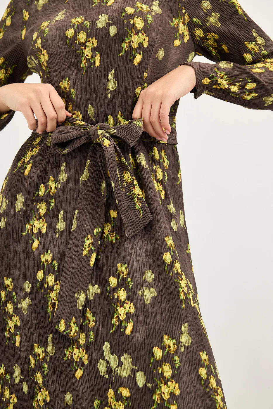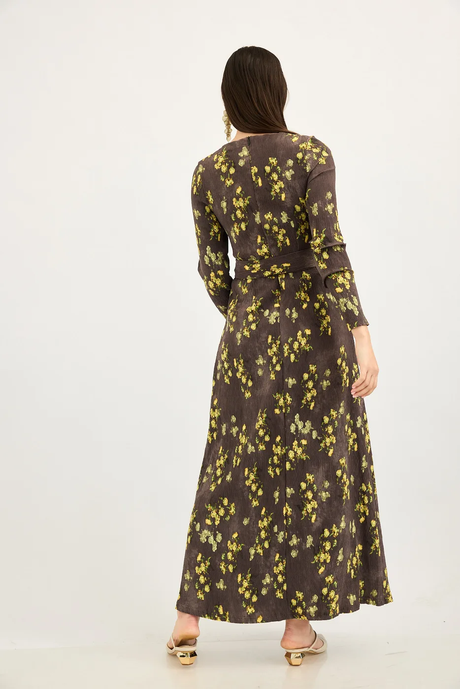 שמלה כיווצים פליסה אפור עם כתמים ירוק