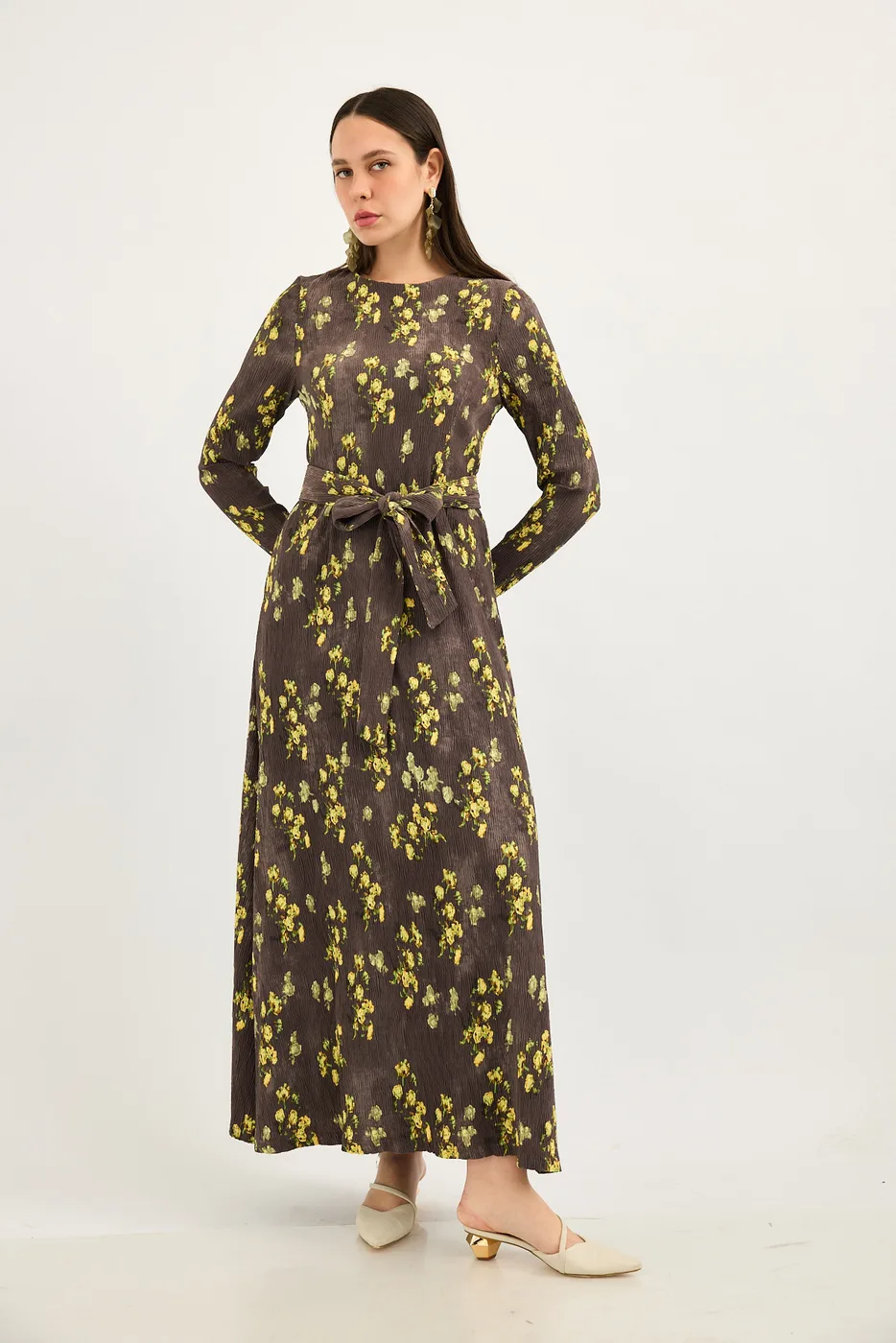 הכיווצים העדינים יוצרים תנועה יפה ומראה אלגנטי, והחגורת קשירה מאפשרת להדגיש את המותן או לשחרר למראה נינוח יותר. הבד נעים וקליל.