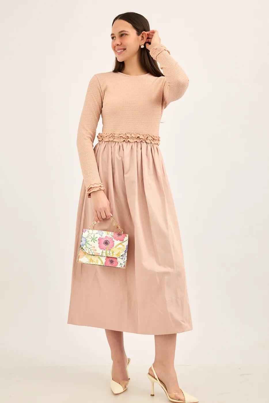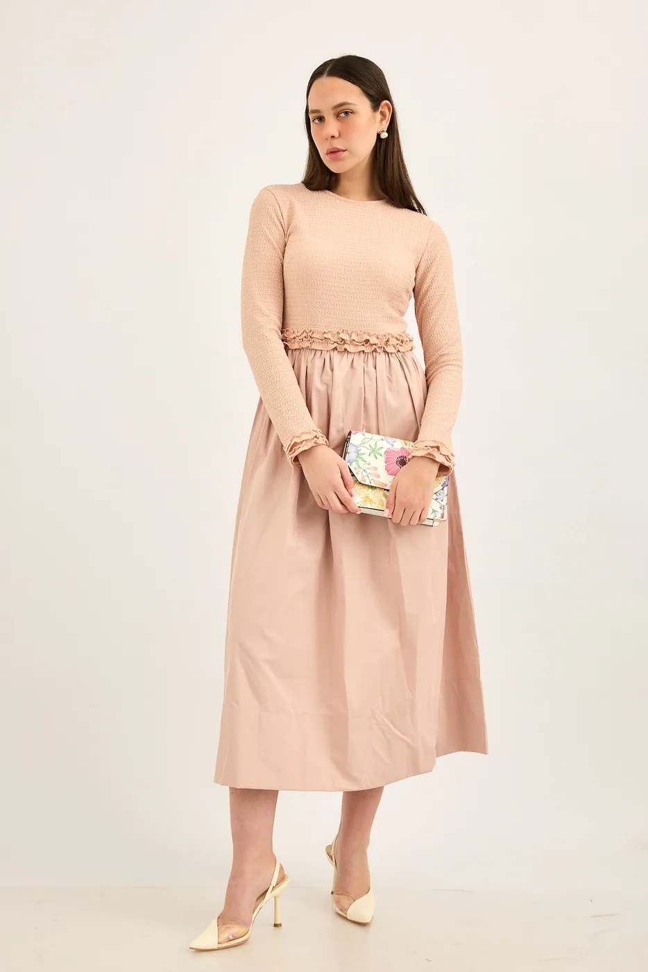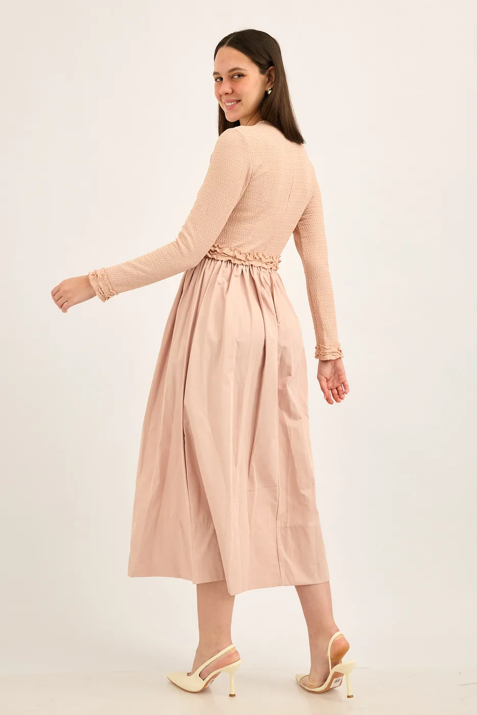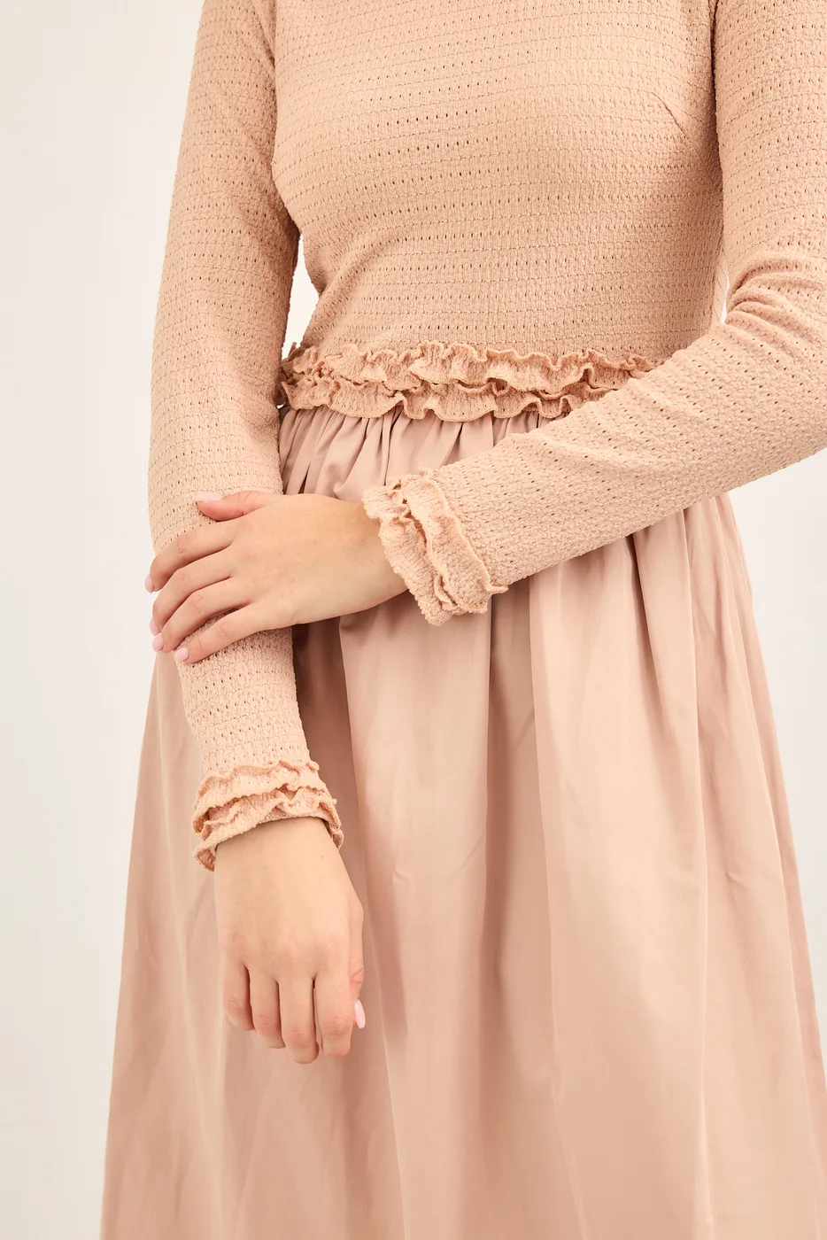 שמלת ריב משולבת כותנה ורוד מעושן