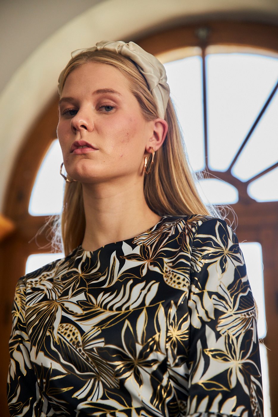 בד מודפס הכולל פסי זהב מיוחדים שנותנים מראה חגיגי עוד יותר