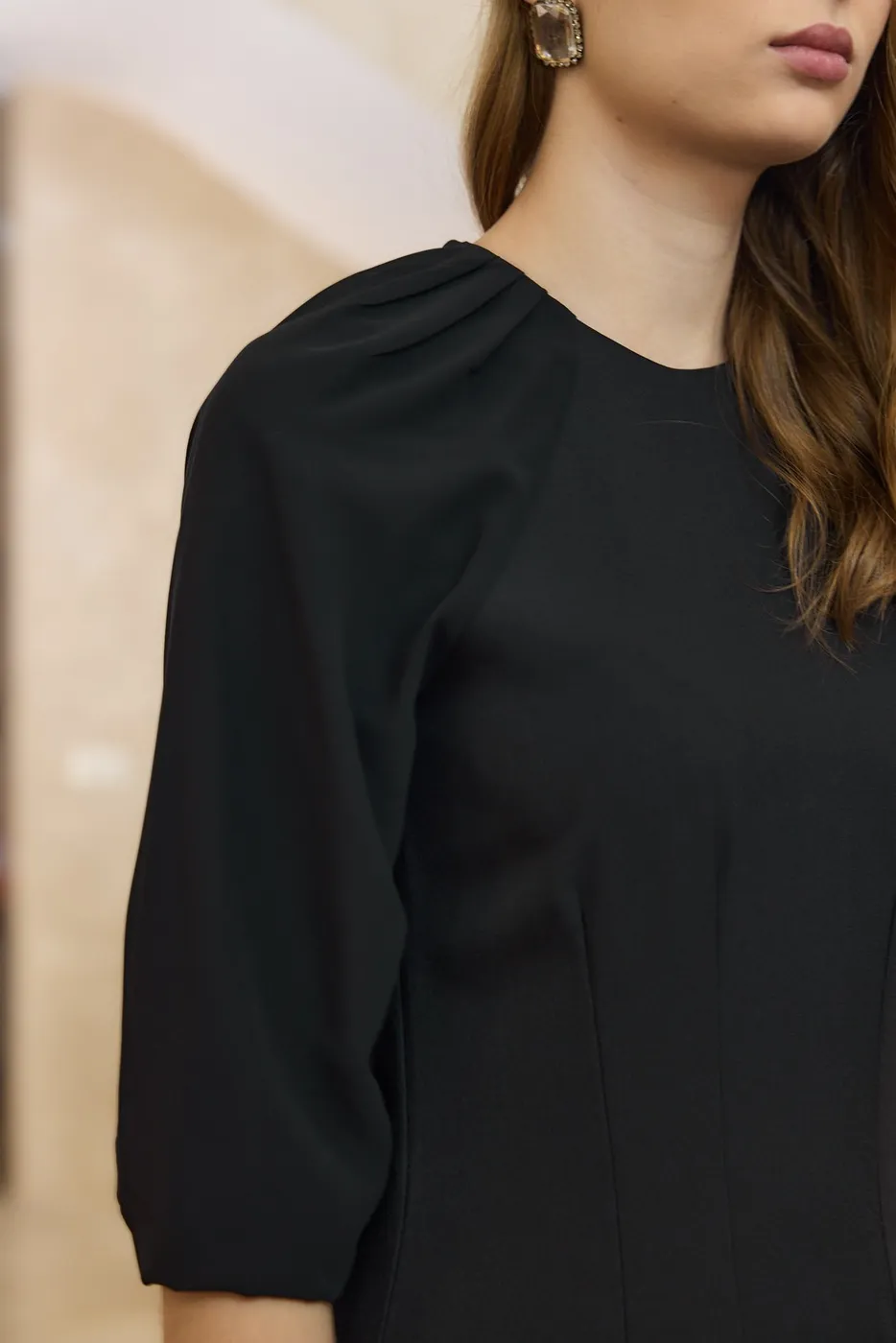 השרוולי רגלן מבד שיפון משווים לה מראה חגיגי ויוקרתי.