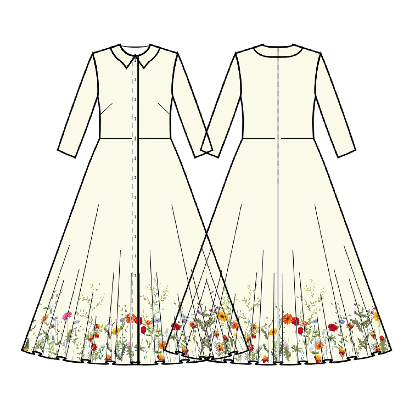 הדוגמא של הפרחים העדינים הופכים את השמלה לקלאסית