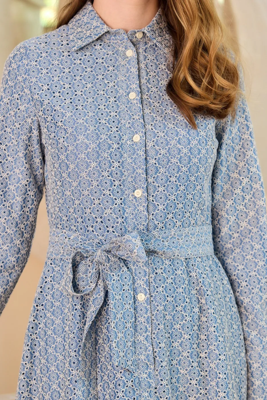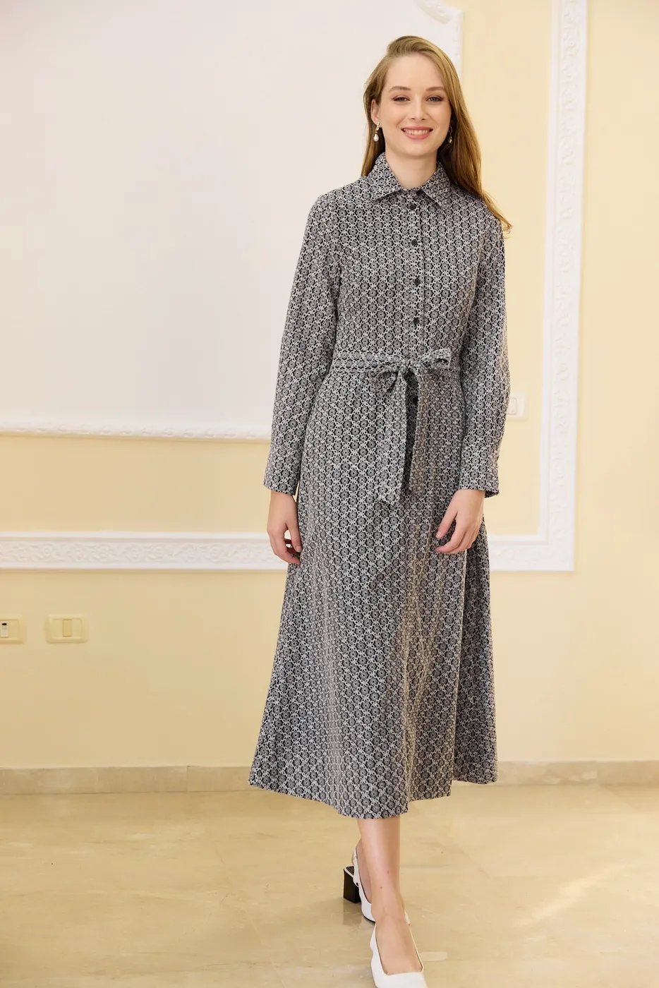שמלה בגזרה קלאסית ומחמיאה עם בד ריקמה חגיגי ואופנתי