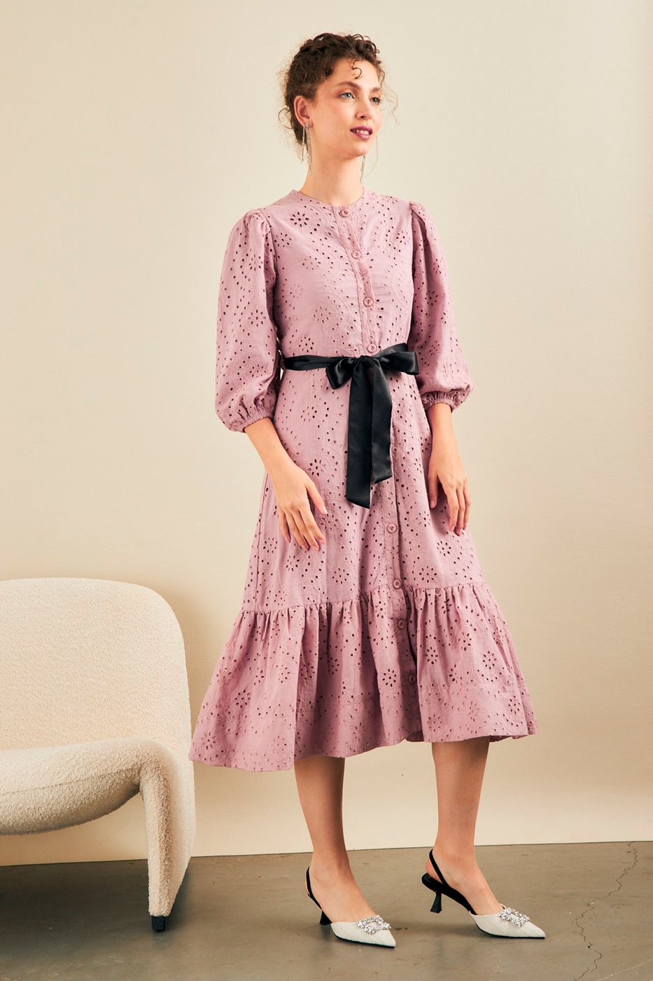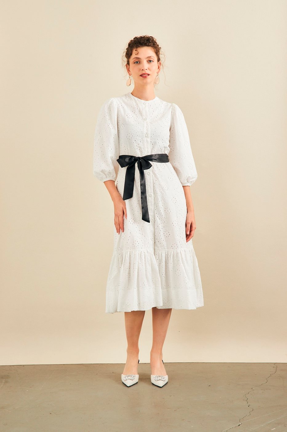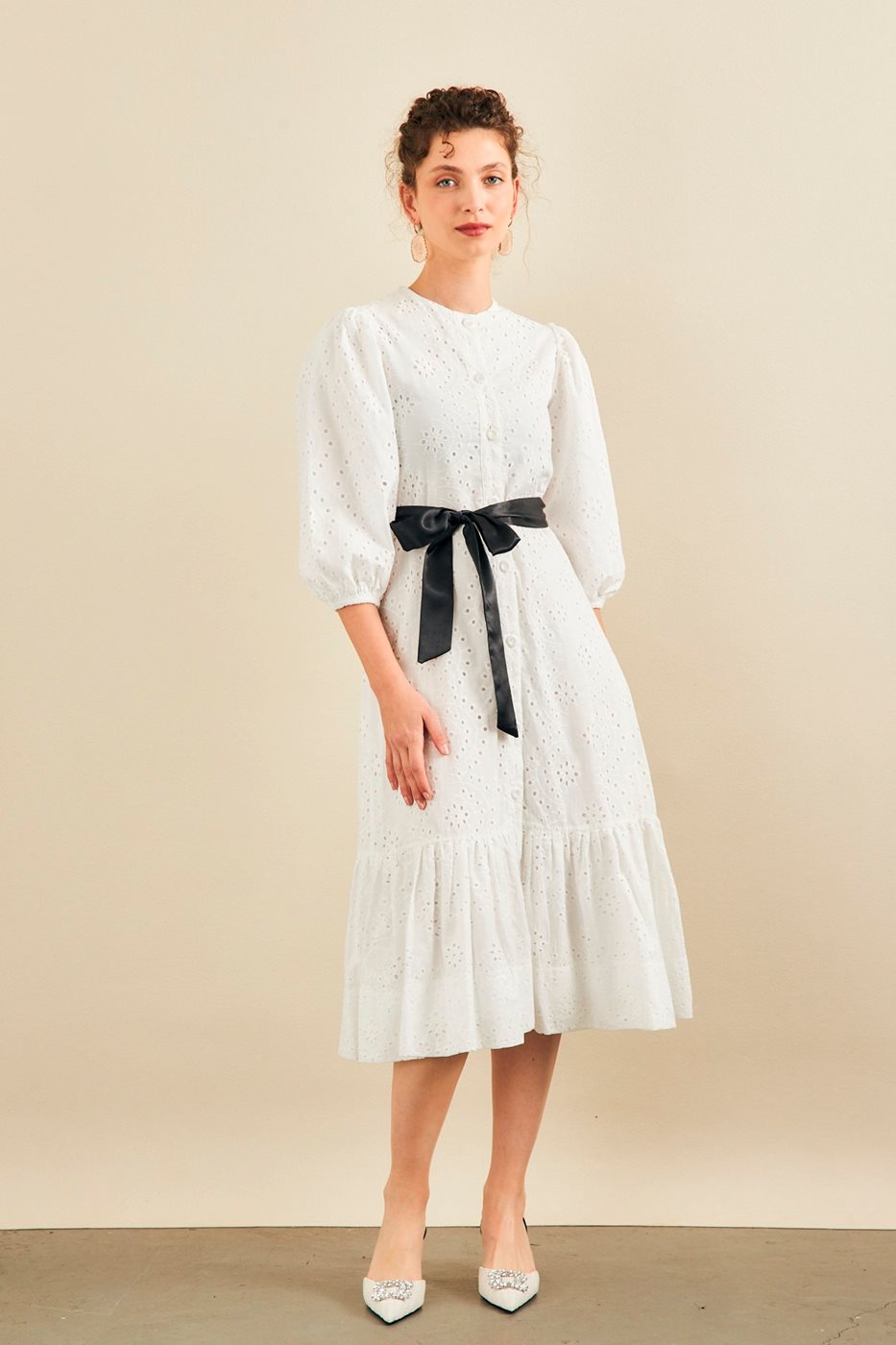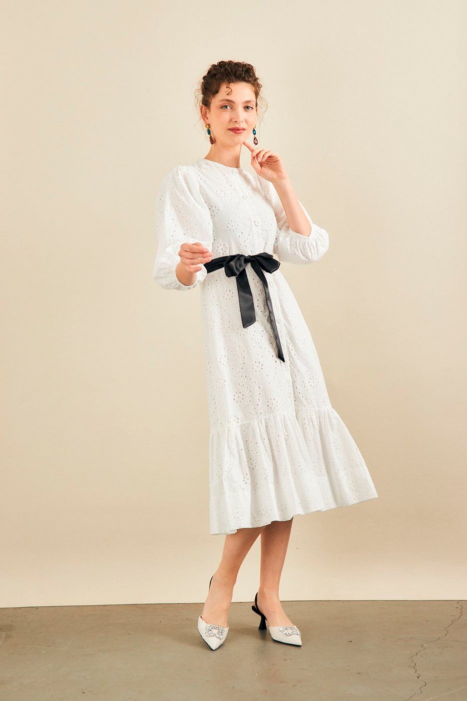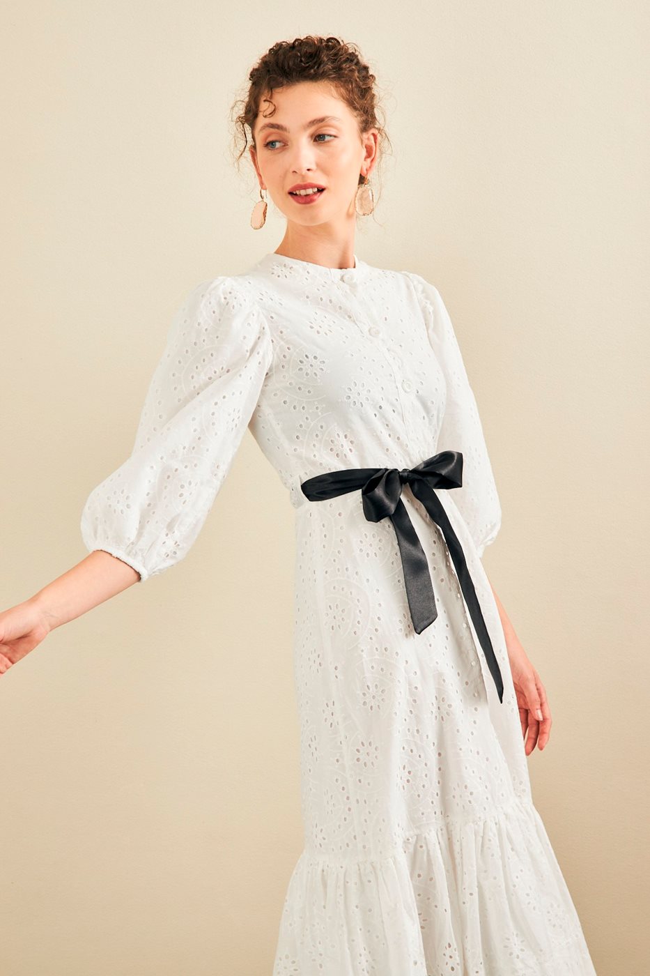 השמלה המושלמת!שמלת תחרה חגיגית עם שרוולים תפוחים בסטייל עדין,