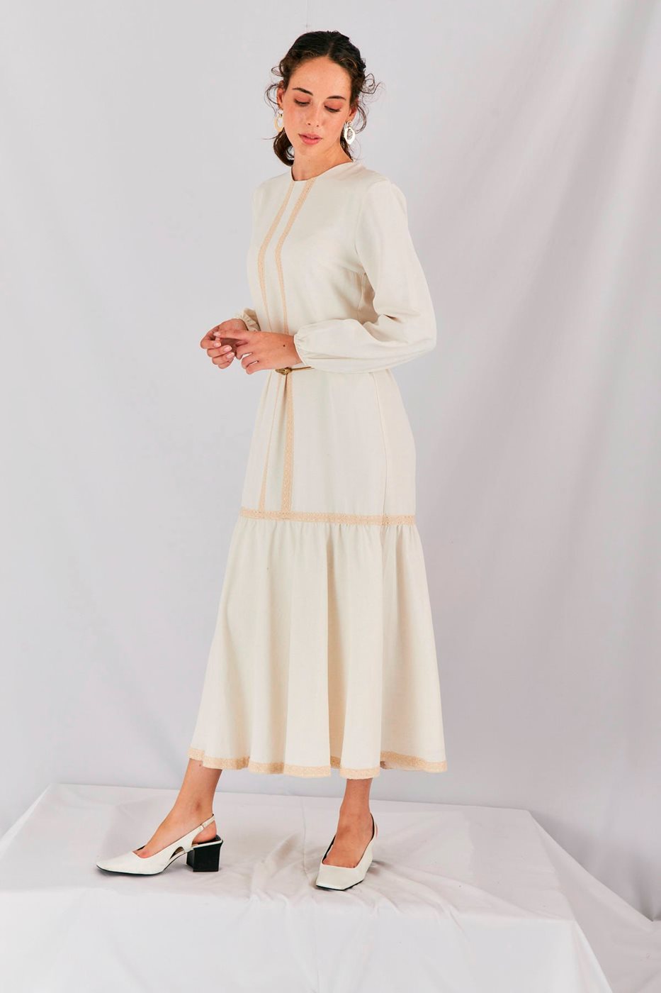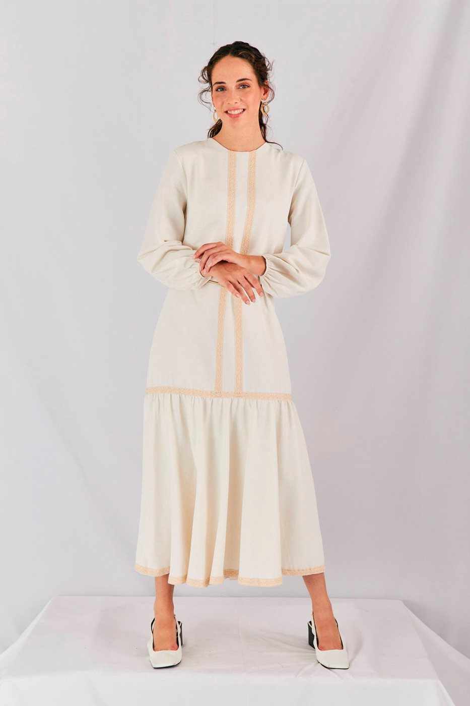 שמלת קומות קרם ופסים בז'
