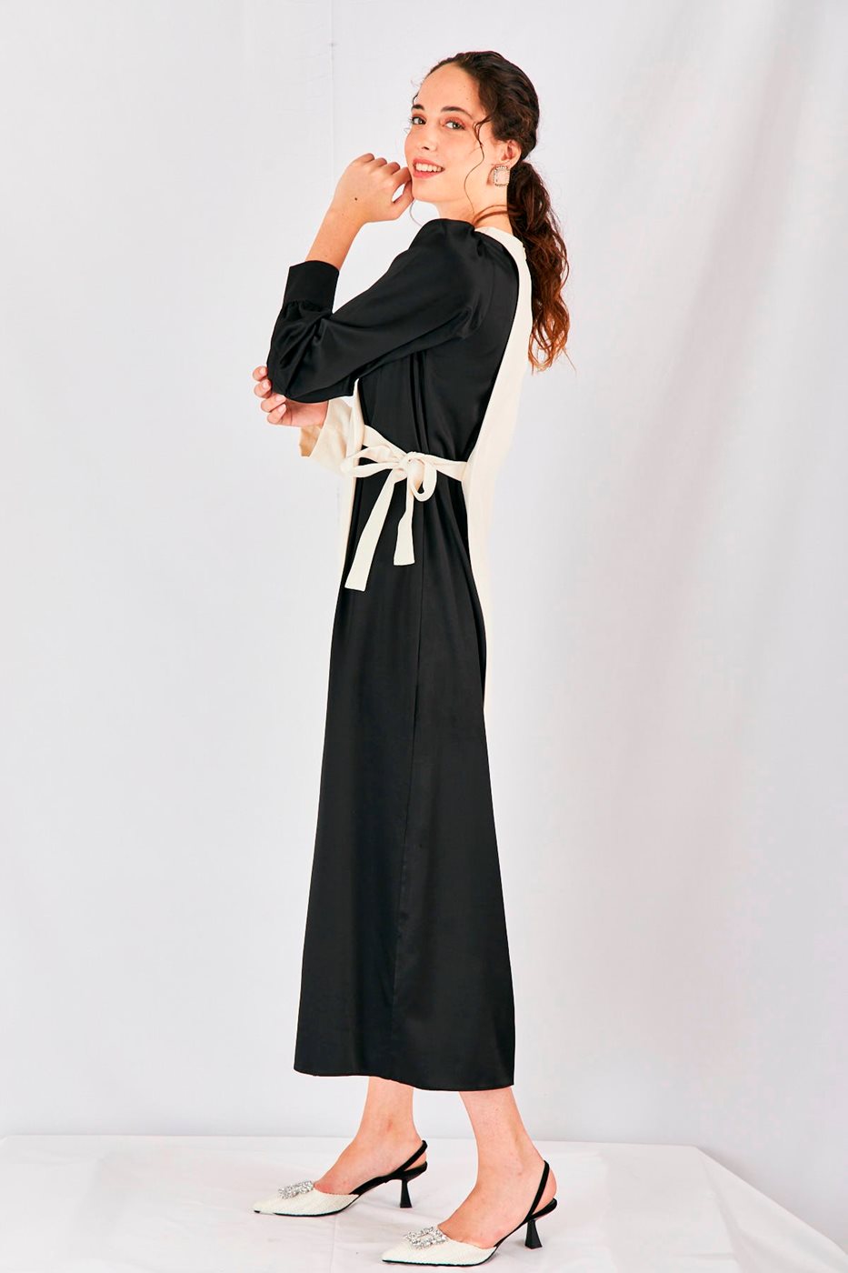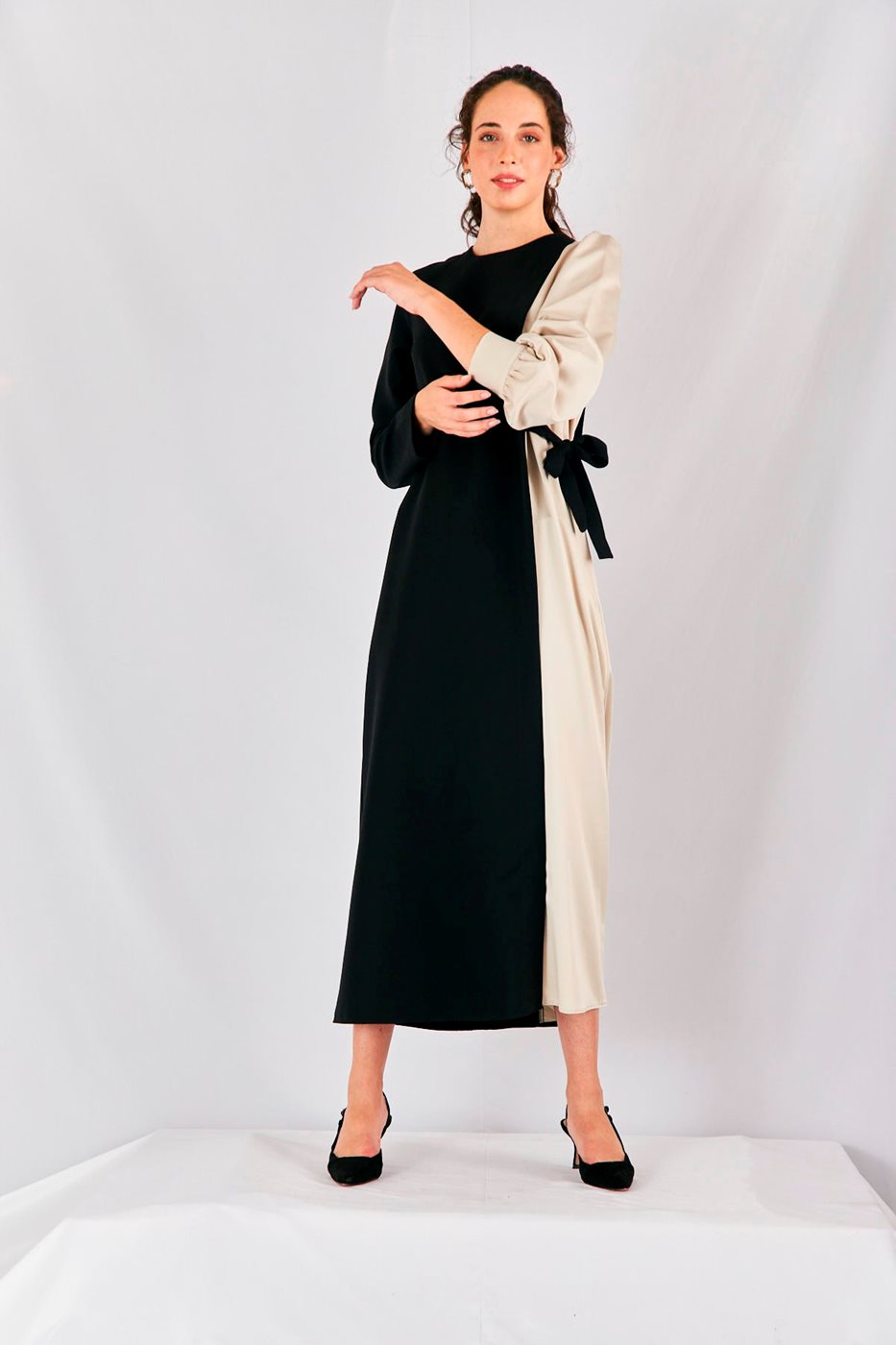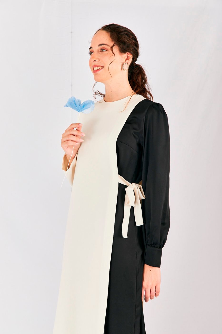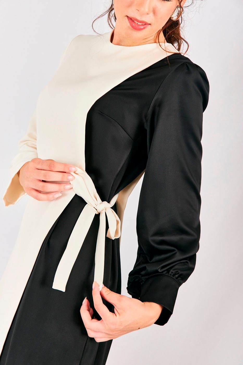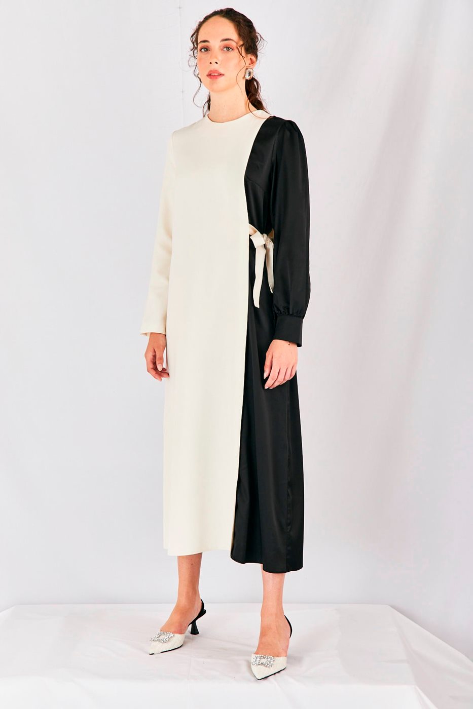 שמלה חצי לבן חצי שחור קשירה