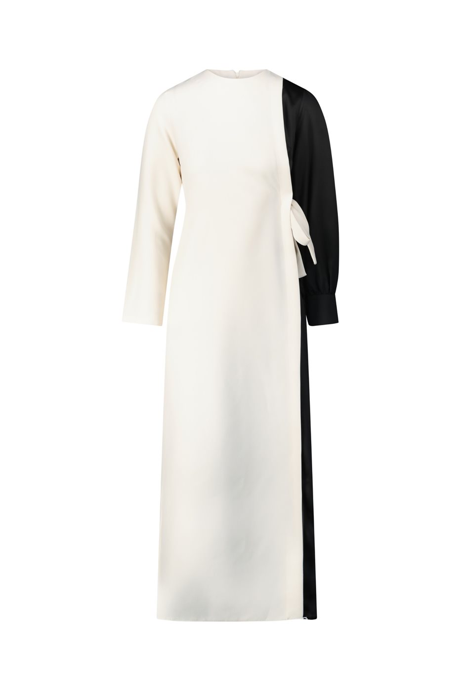 שמלה בעיצוב ייחודי חצי שחור וחצי לבן, מה שיוצר מראה חגיגי במיוחד!