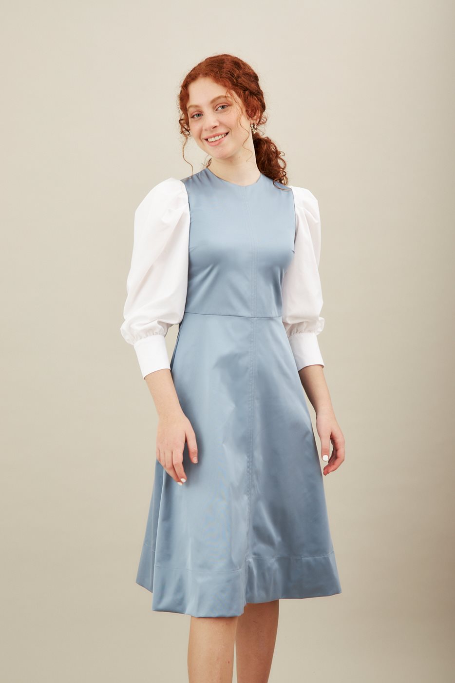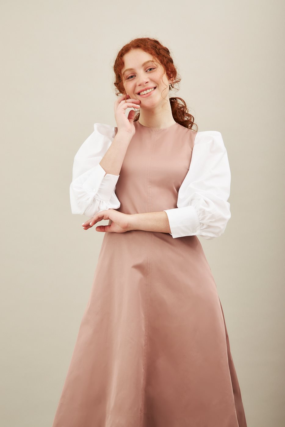 שמלה צעירה, וחגיגית מאוד, שרוולים לבנים מדויקים עם נפח טרנדי במיוחד!
