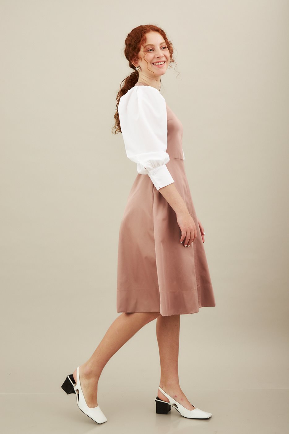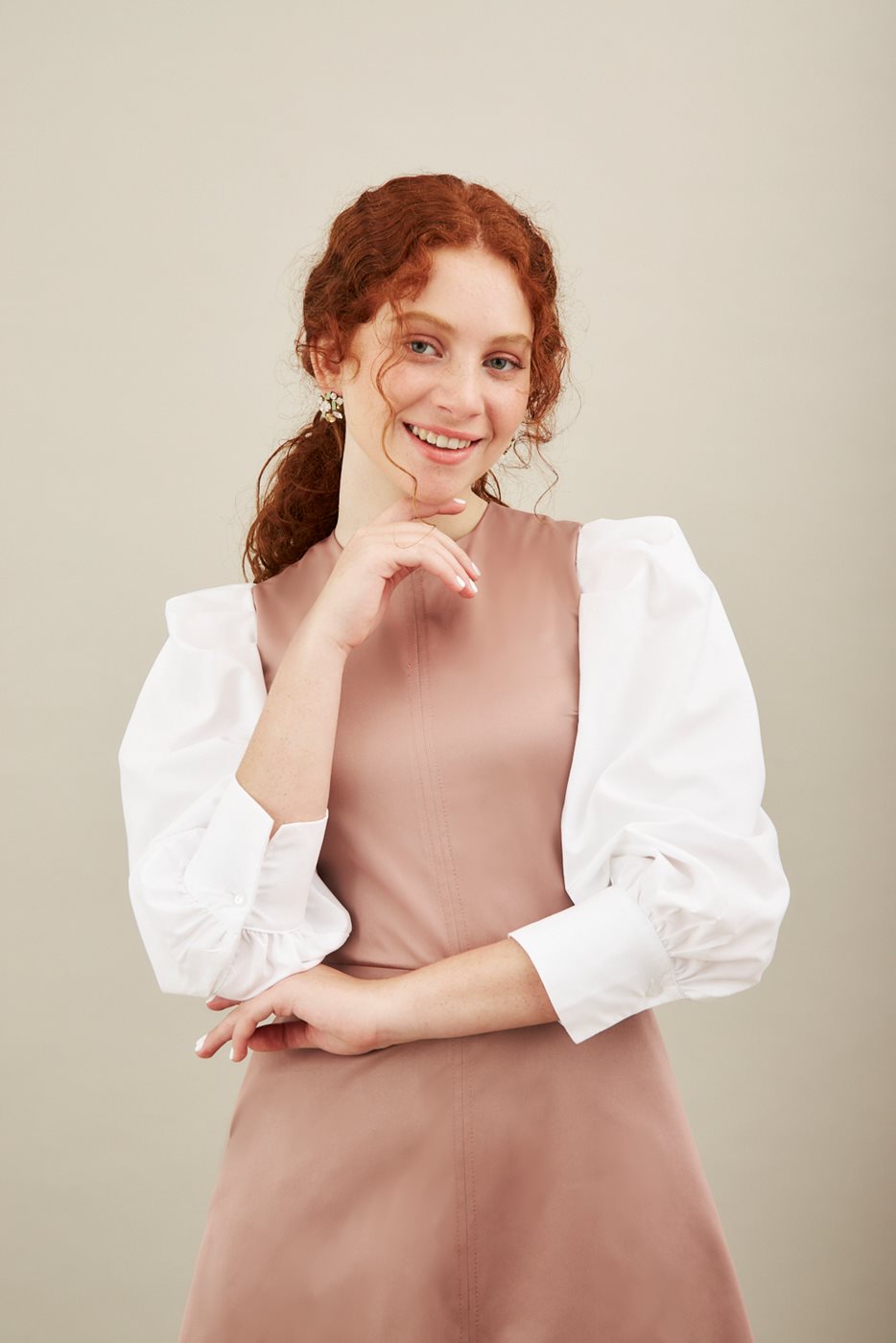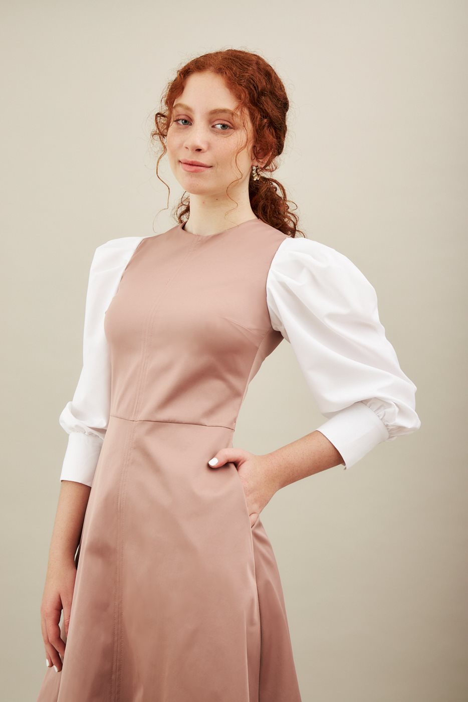 שמלה צעירה, וחגיגית מאוד, שרוולים לבנים מדויקים עם נפח טרנדי במיוחד!