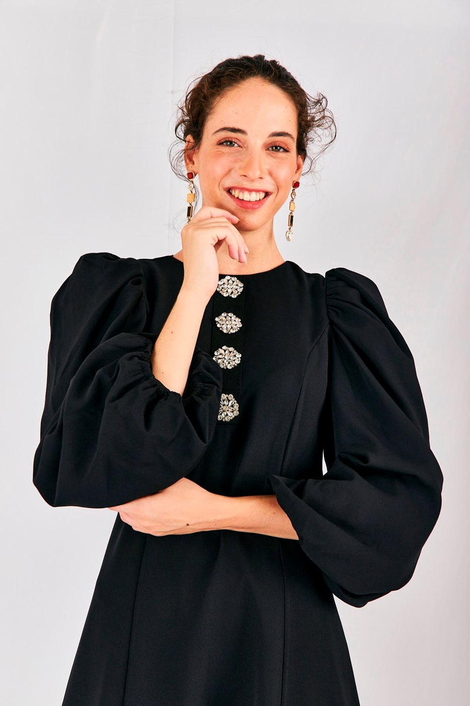שמלת שרוולים תפוחים ויהלומים שחור