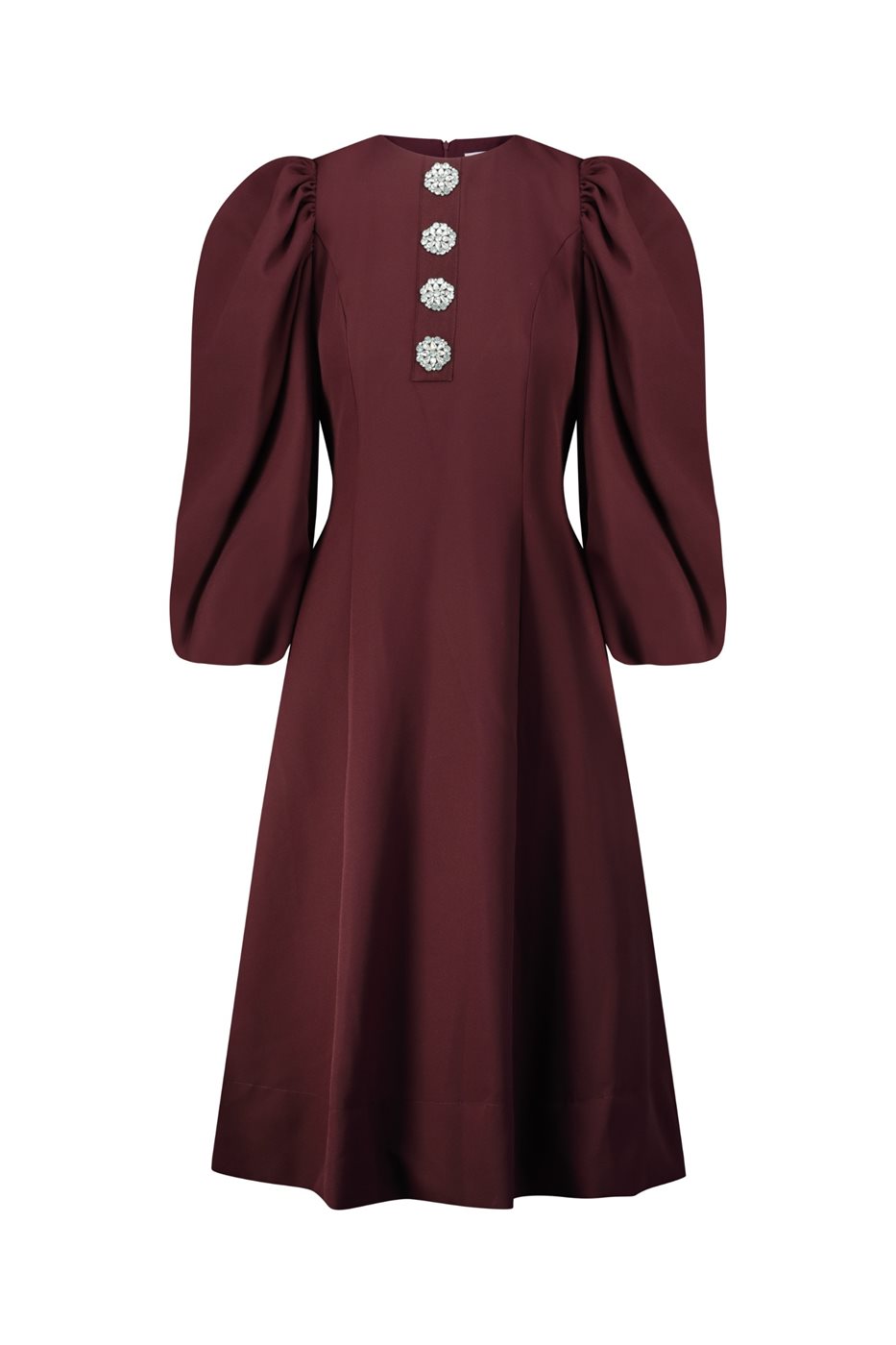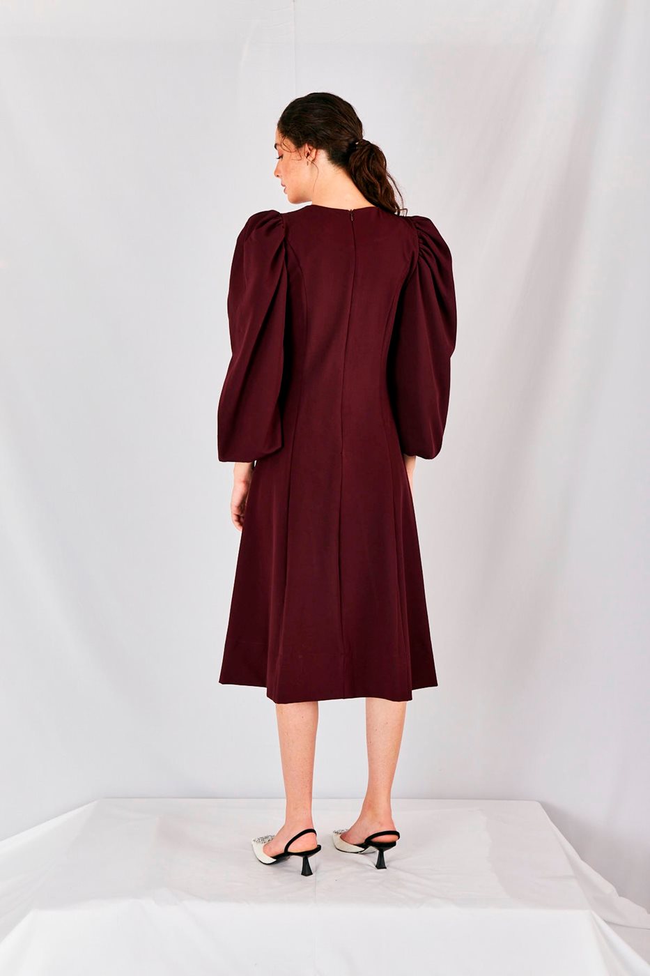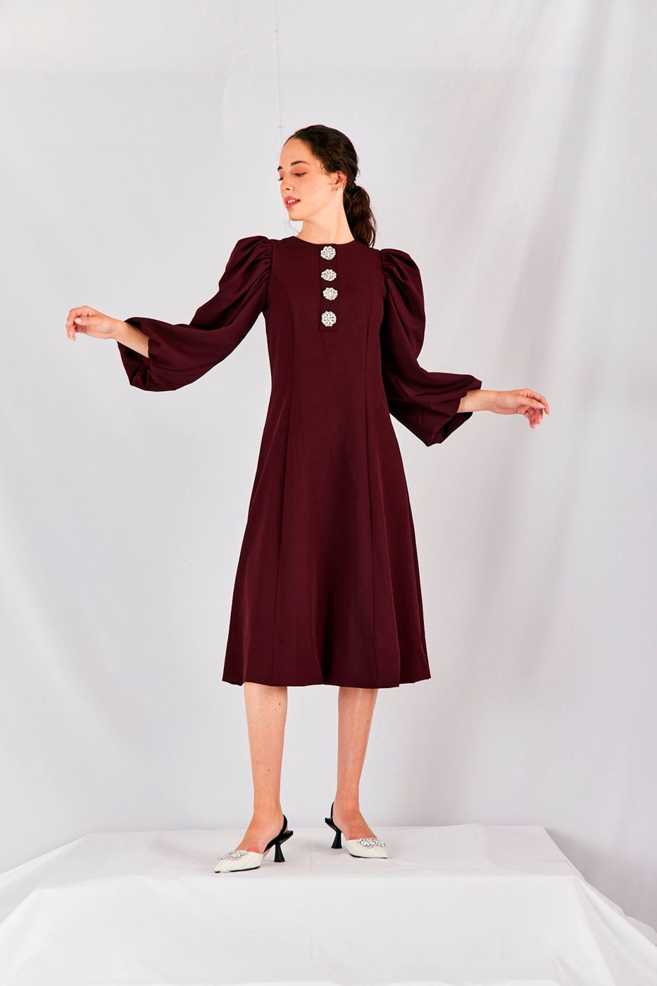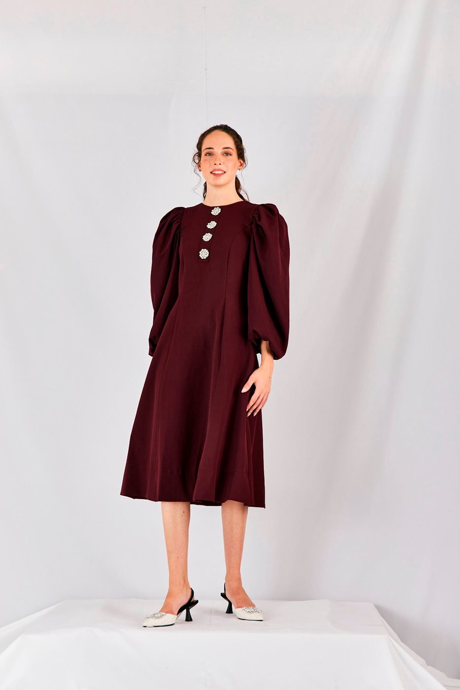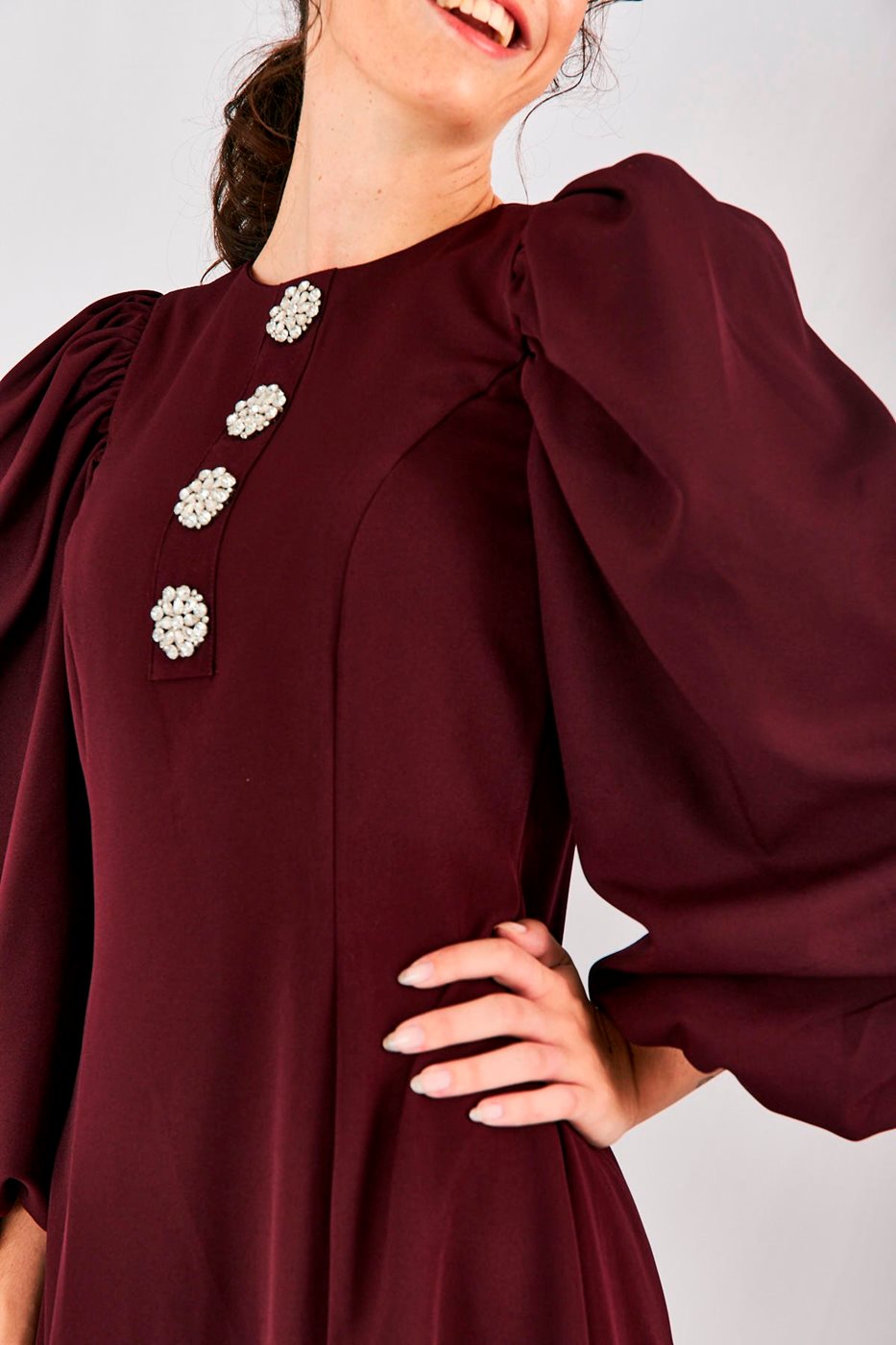 שמלת שרוולים תפוחים ויהלומים בורדו יין