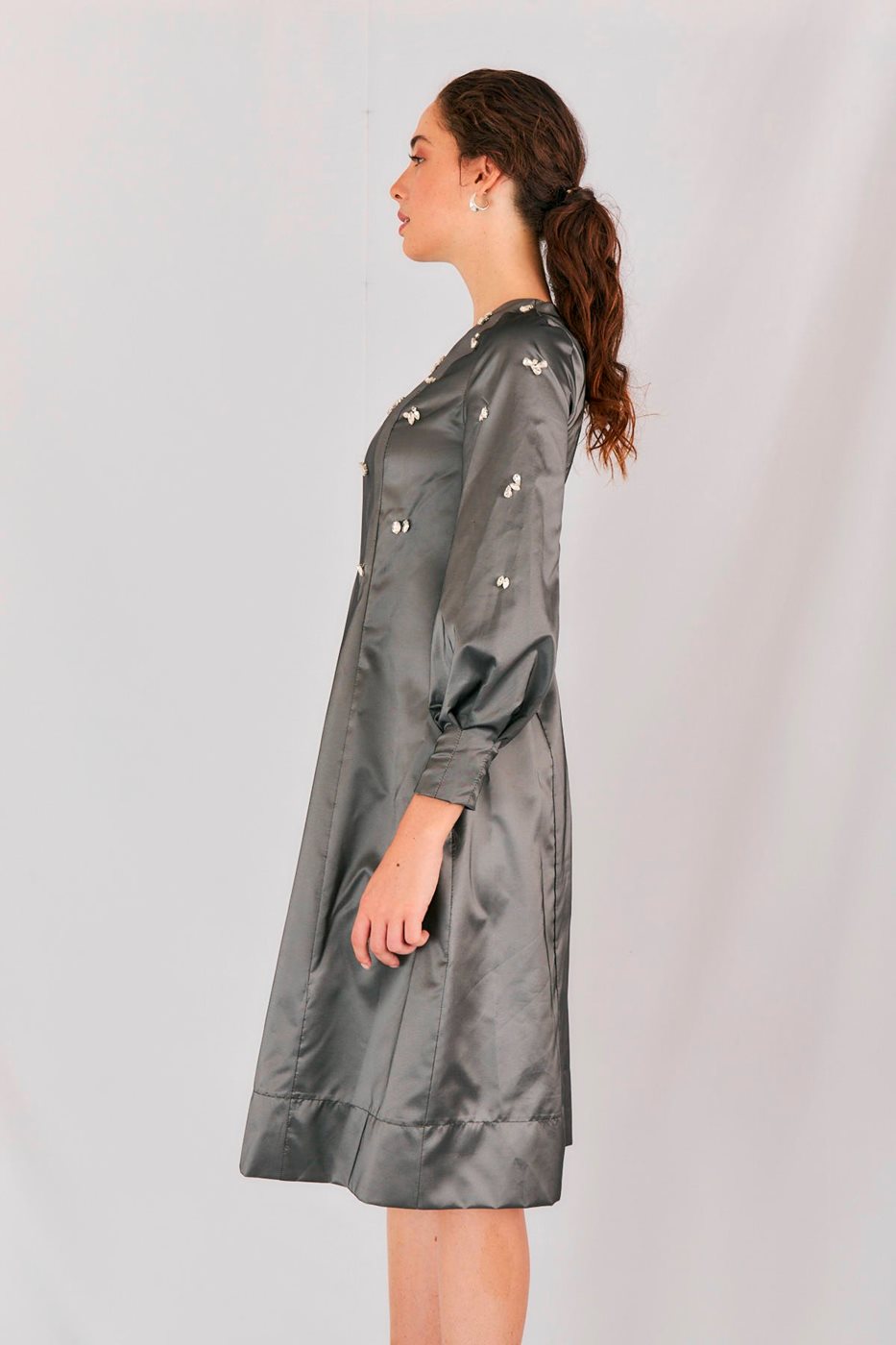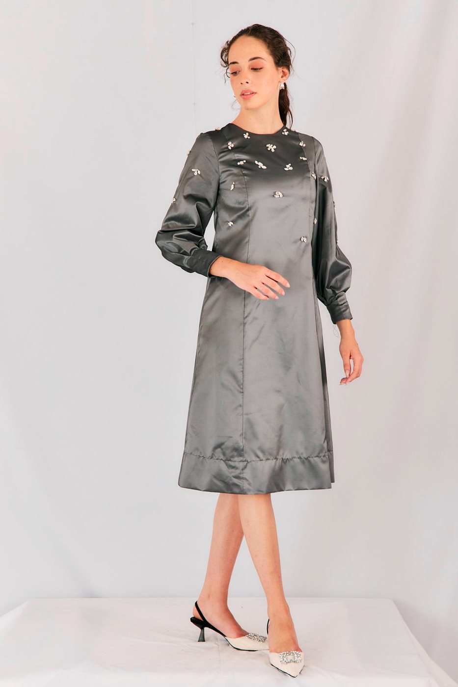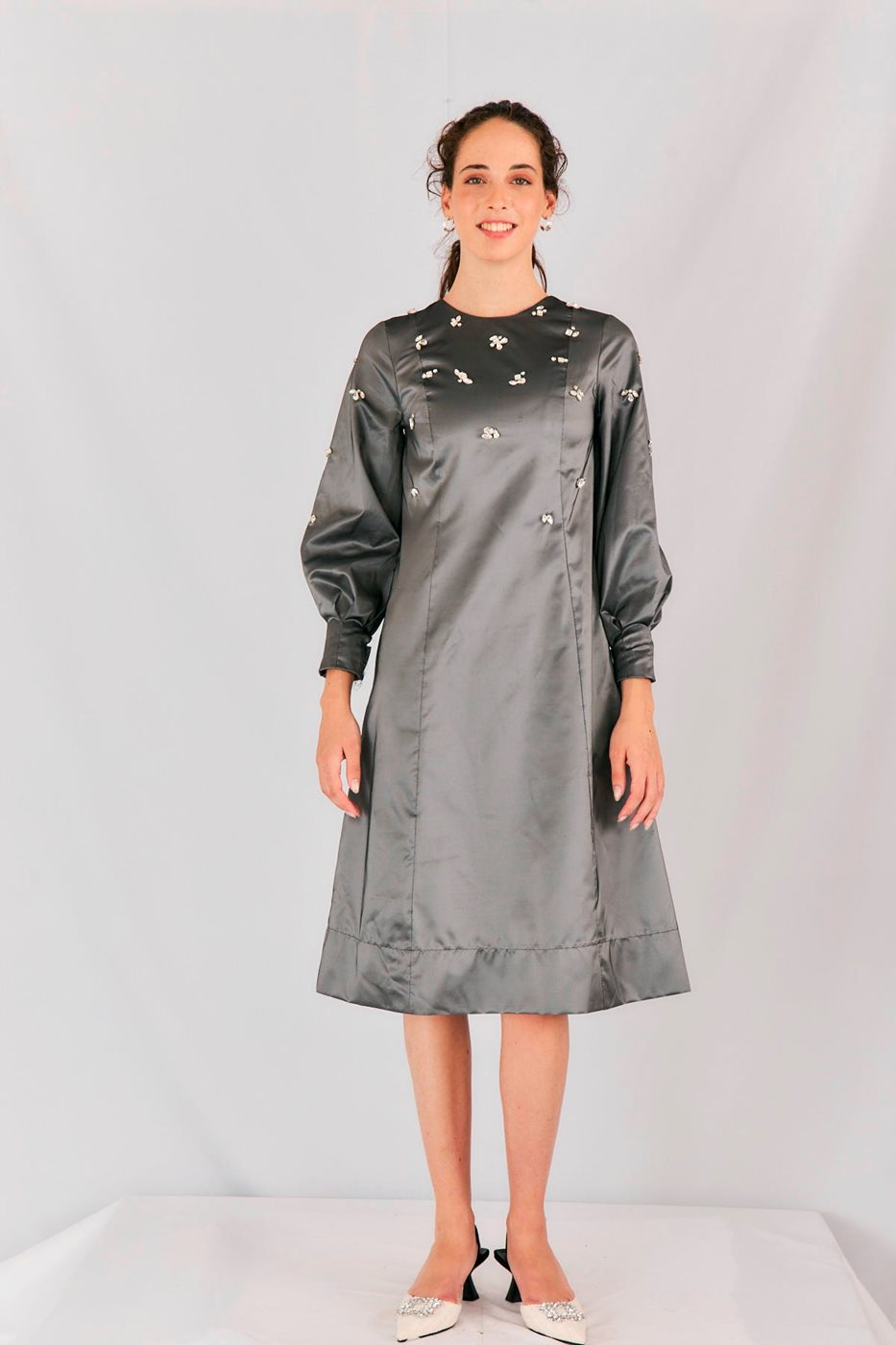 הגזרה של השמלה מדויקת ויושבת על הגוף, ושרוולים בגימור המעניק סטייל לכל המראה.