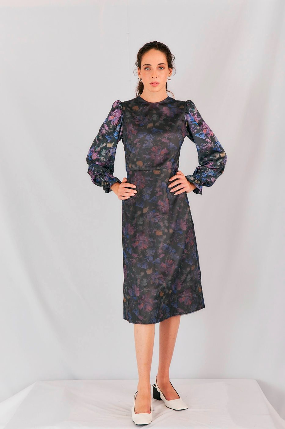 שמלה בעיצוב קלאסי, בשילוב בד סאטן לייקרה מבריק וטול אופנתי, לנוחות וסטייל מושלמים. השרוולים עם נפח עדין המשווה מראה טרנדי.