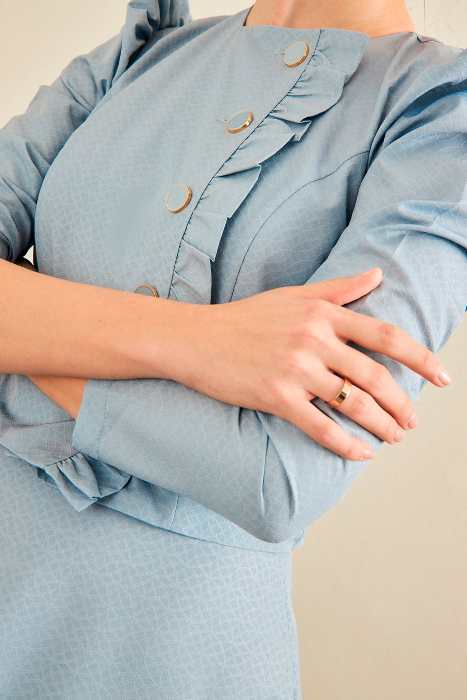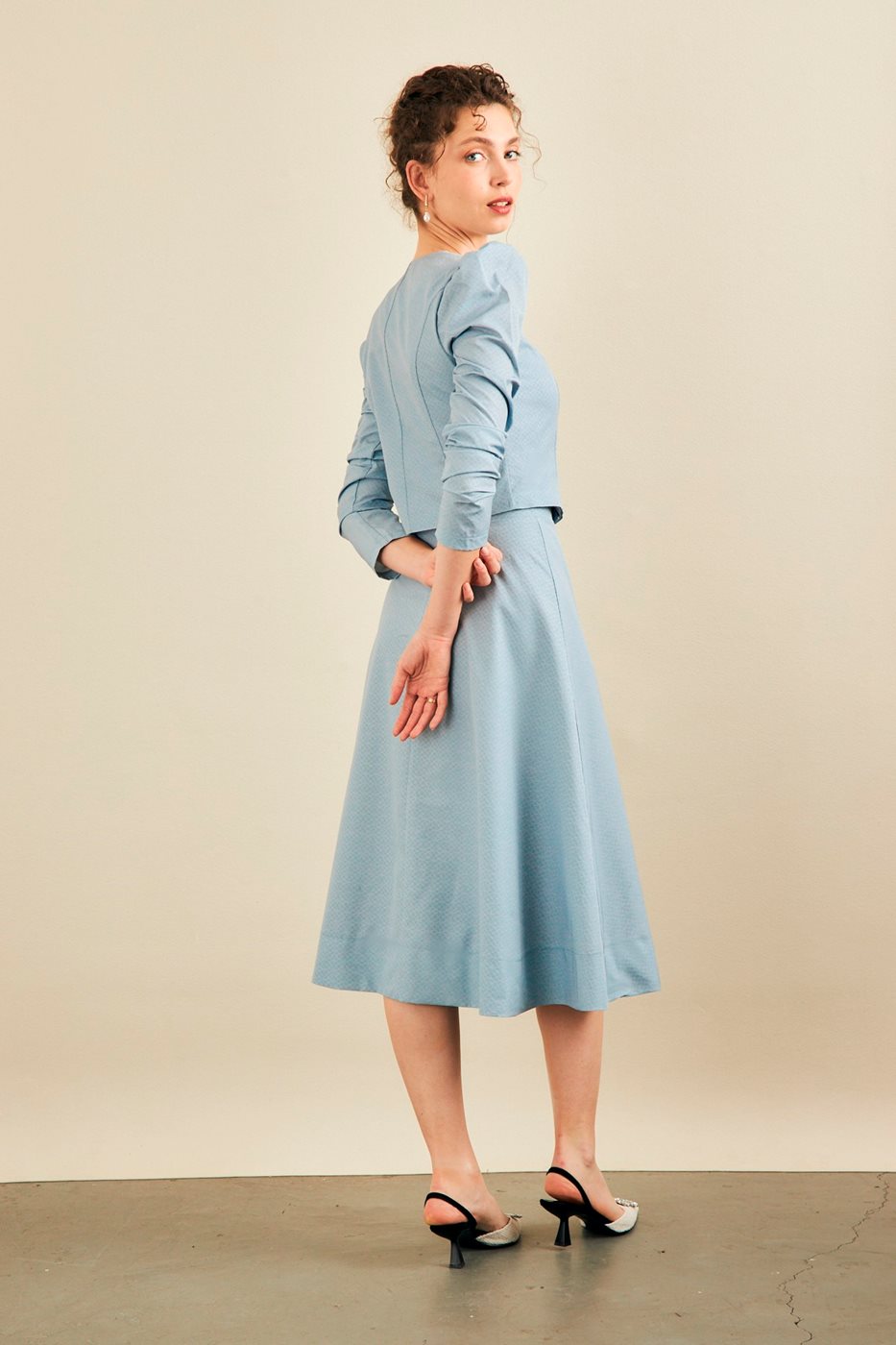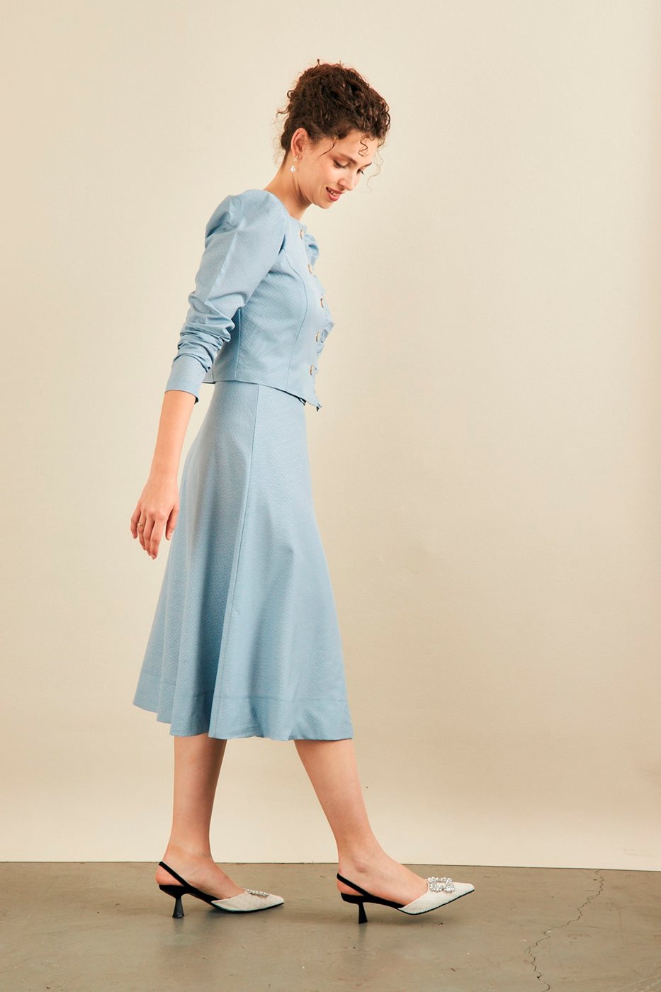 סט חצאית וחולצה ג'אקרד אפור תכלכל