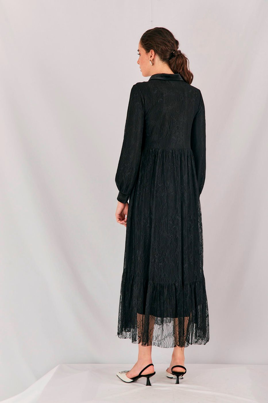 שמלת תחרה וצווארון קטיפה שחור