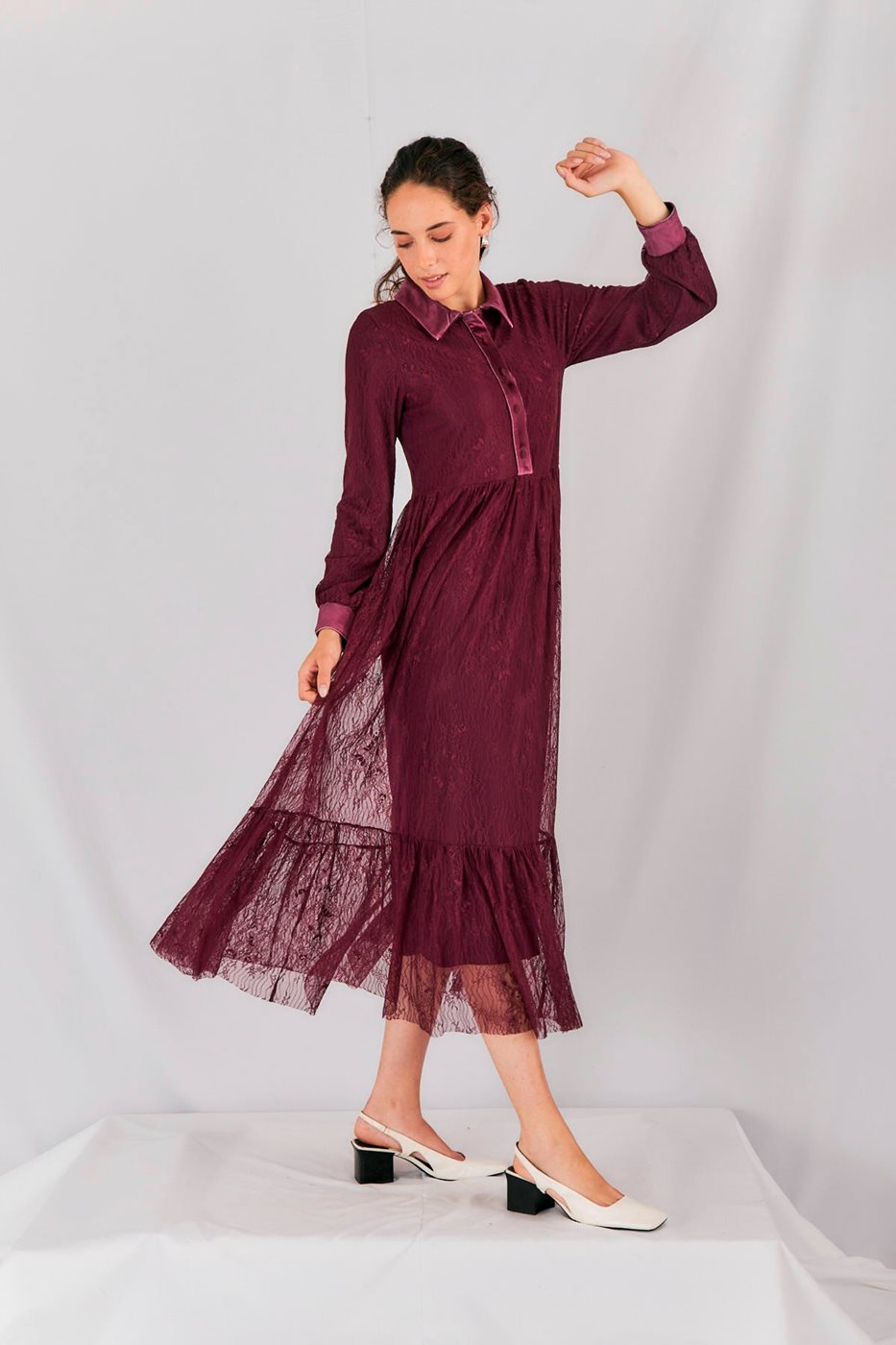 שמלת תחרה צנועה וקלילה, מצליחה לשלב בצורה מושלמת בין נוחות וסטייל אופנתי.