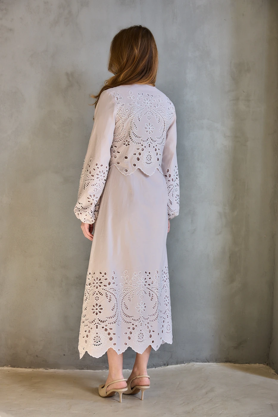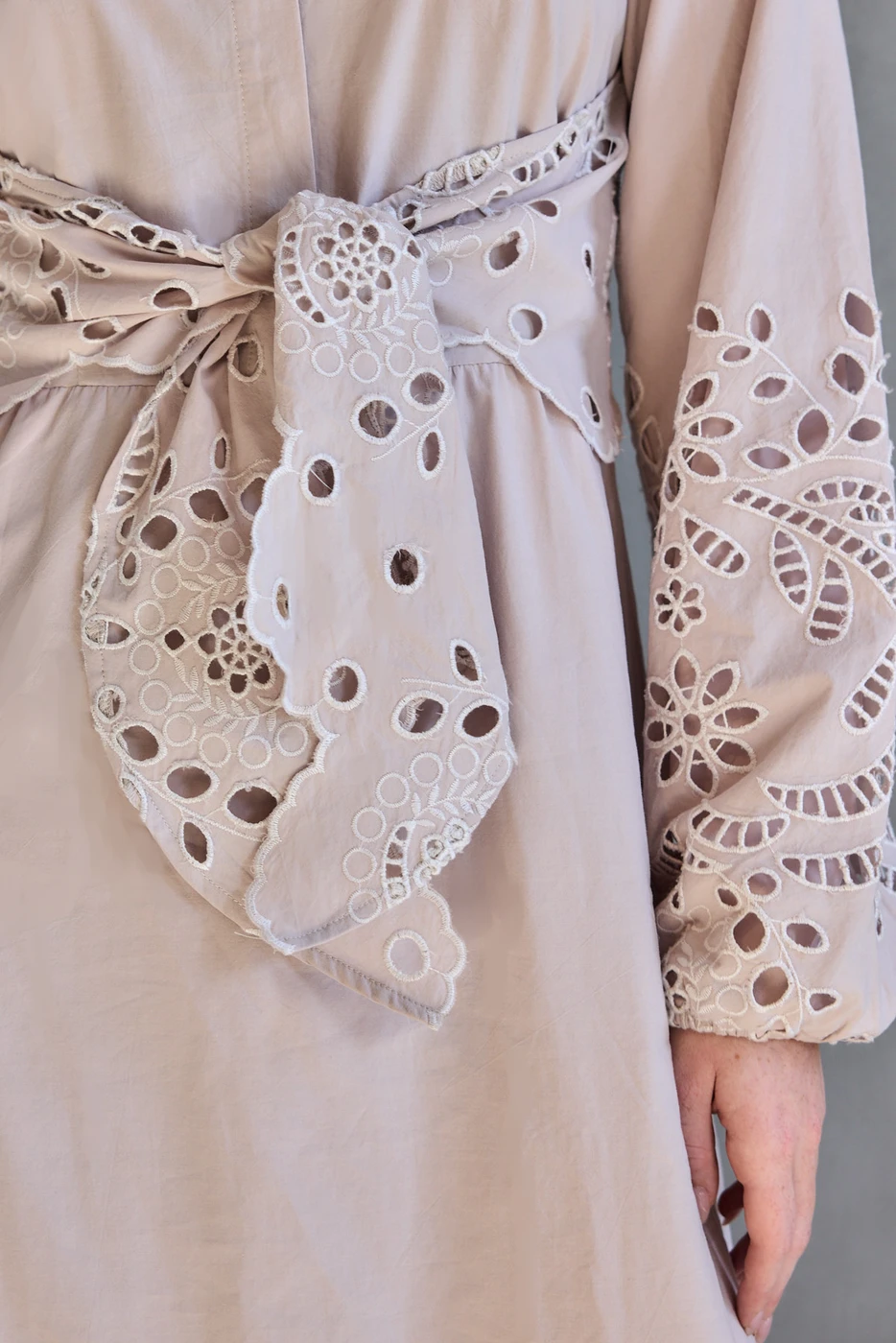 שמלת כותנה תחרה בז' בהיר