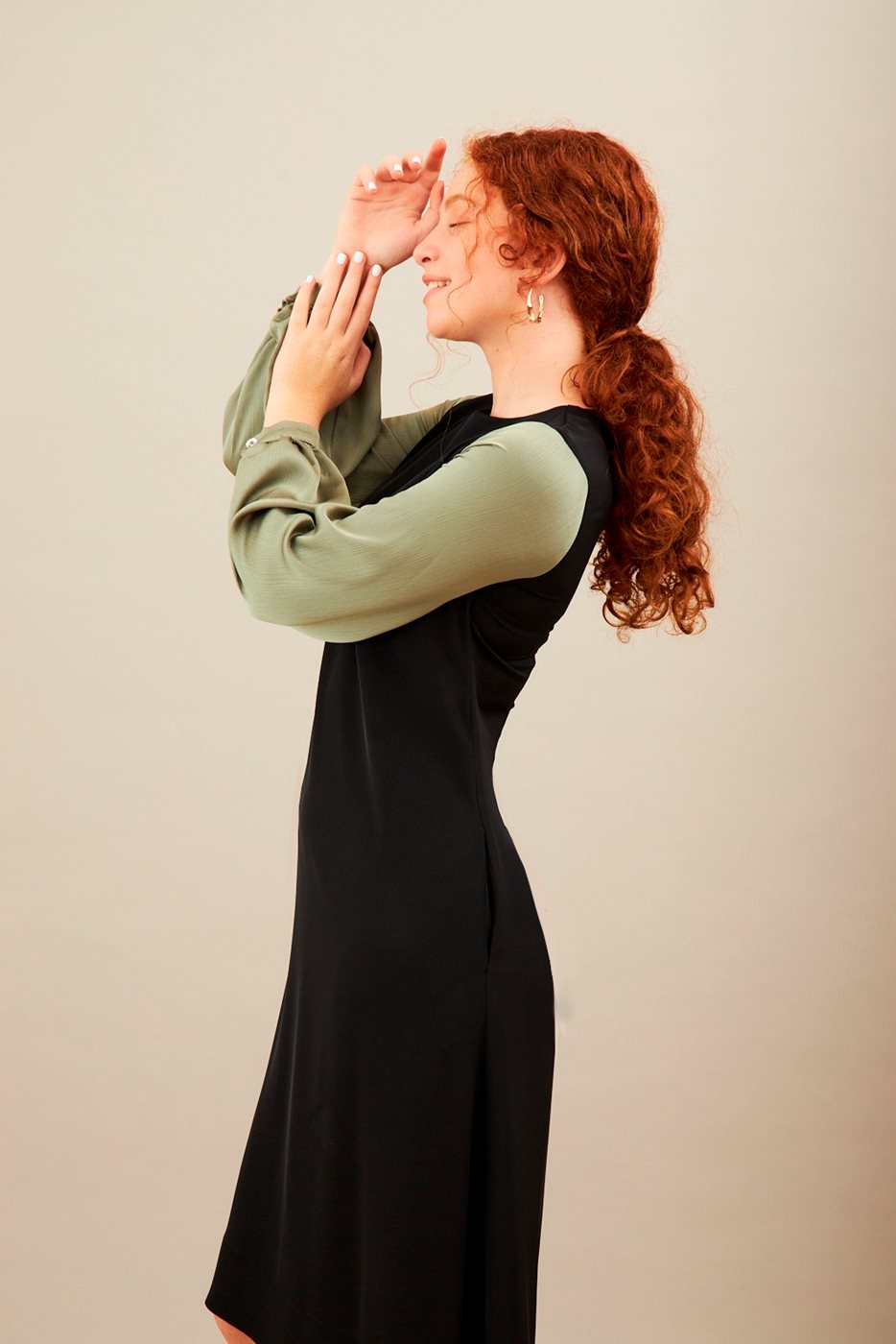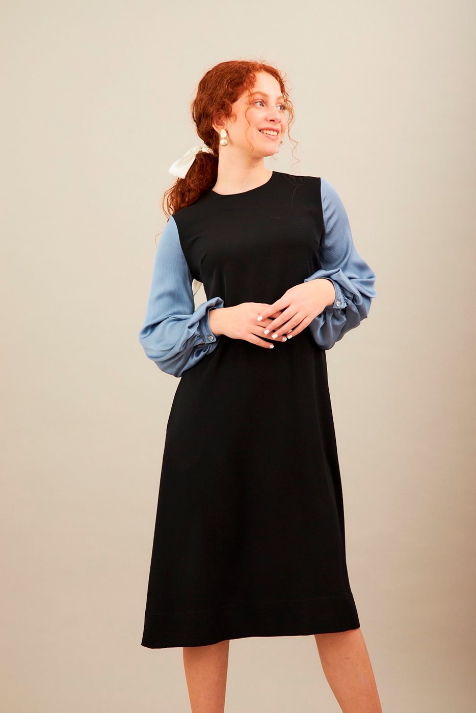 שמלה מעוצבת ובנויה היטב עם שרוולים תפוחים בצבעים הכי טרנדיים לעונה, תכלת, ורוד, בז' וירוק בהיר.