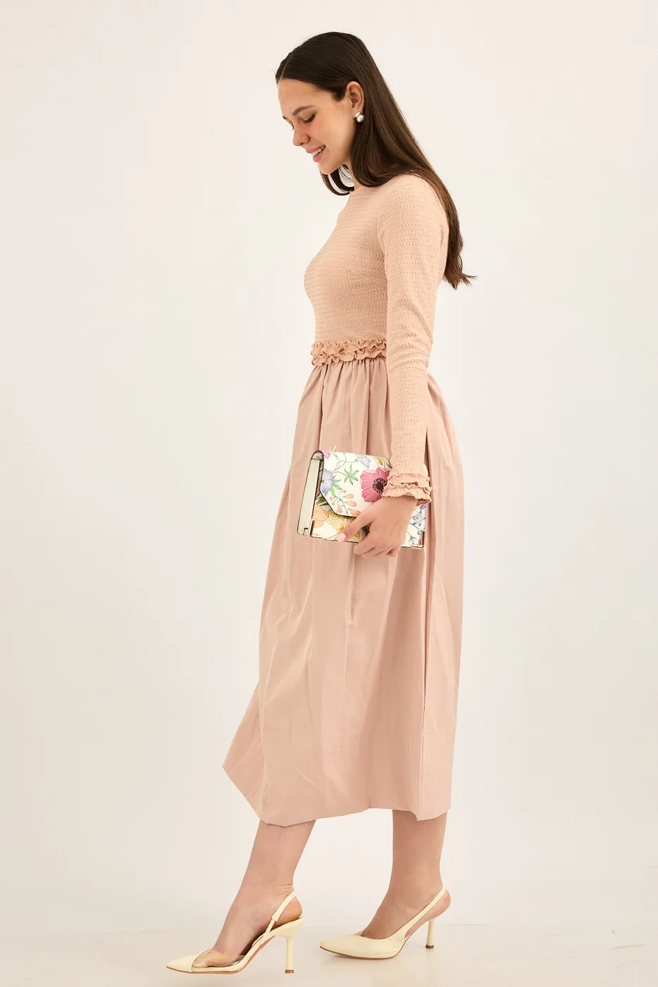 שמלת ריב משולבת כותנה ורוד מעושן