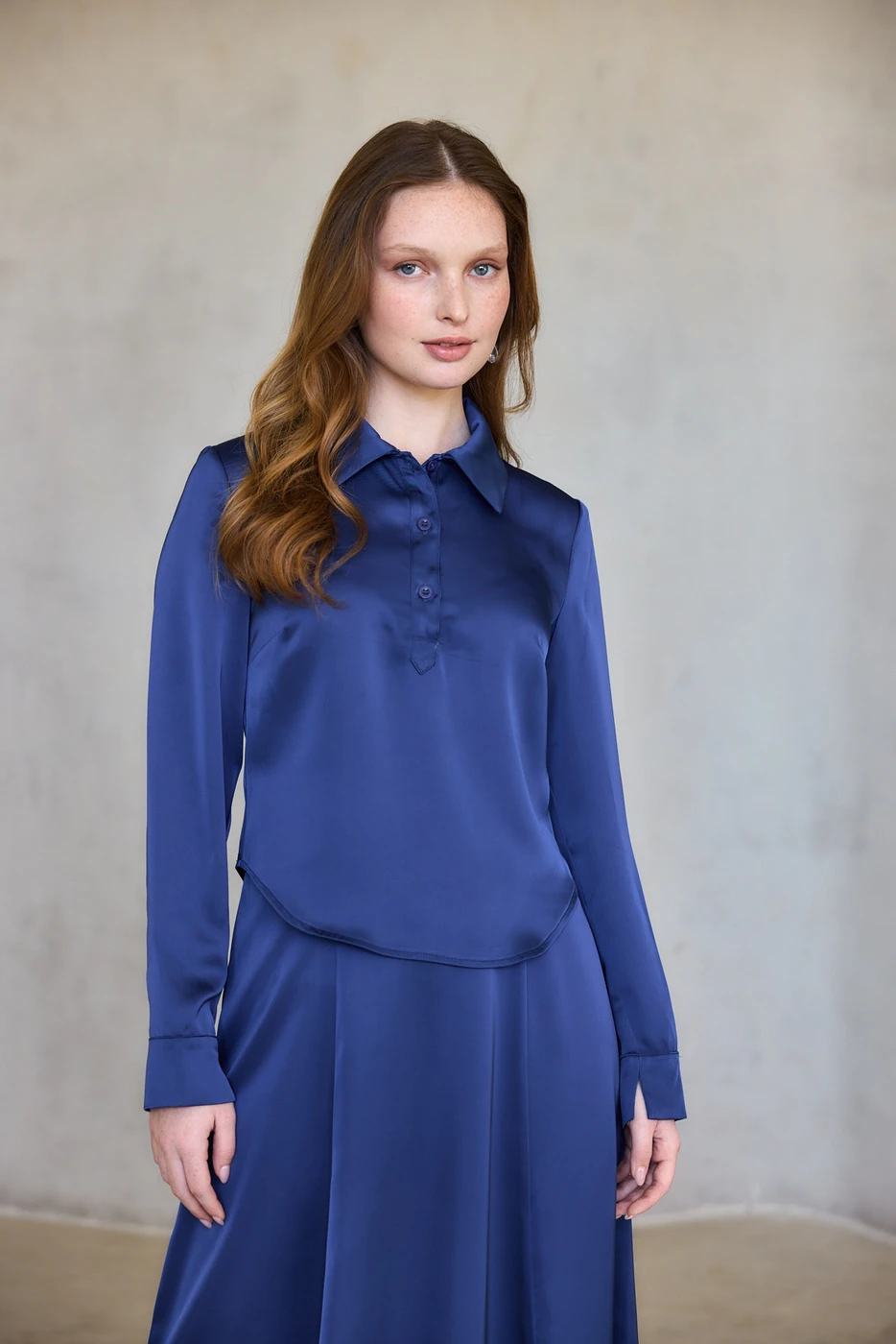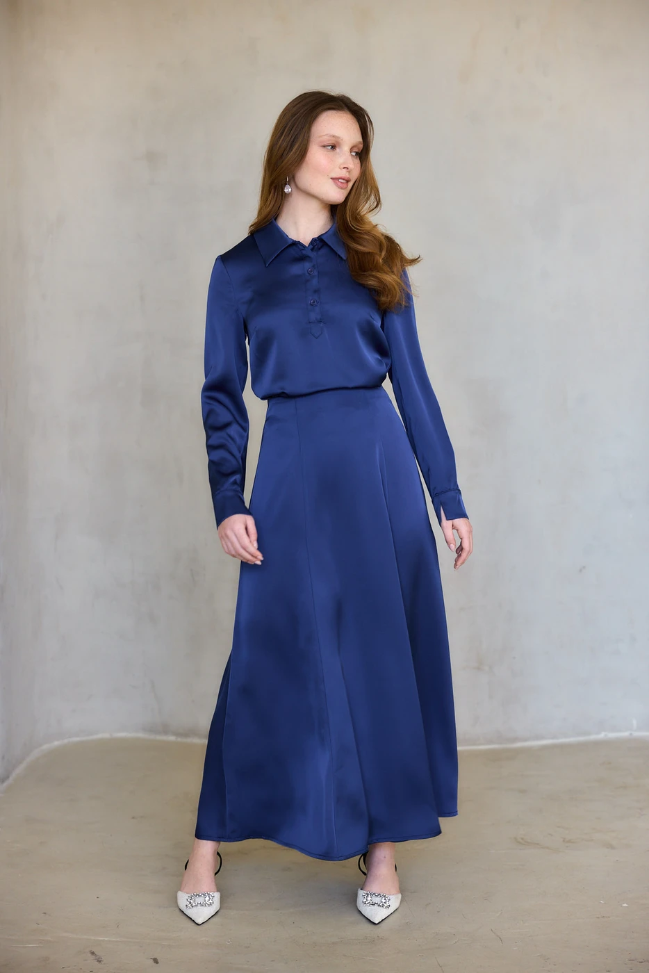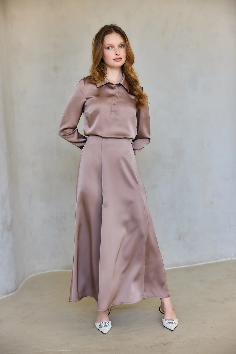 סט סאטן חלק ויוקרתי, במראה קלאסי ומוקפד.