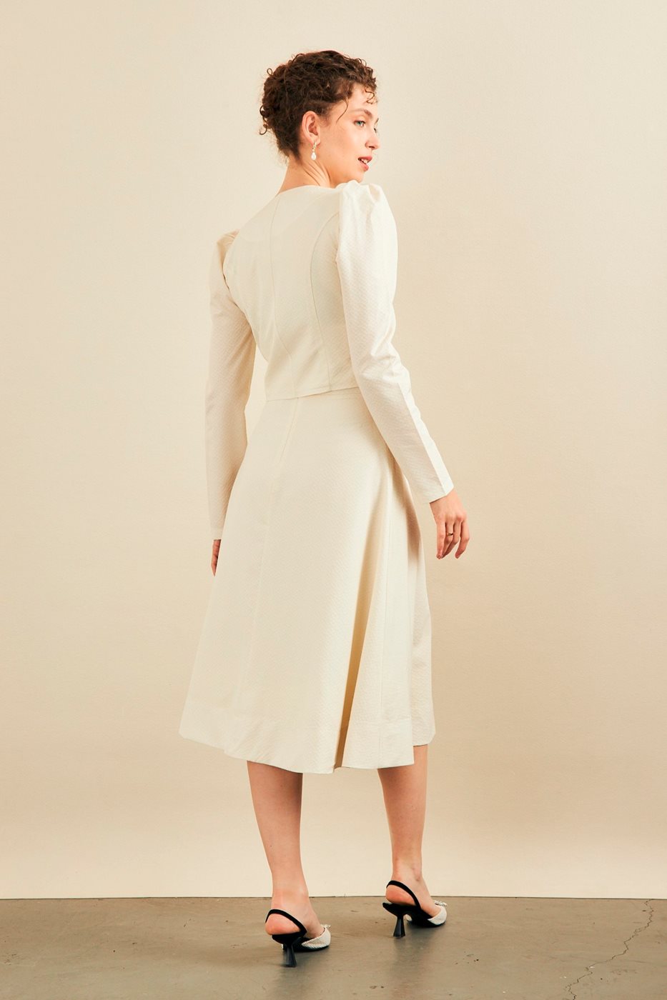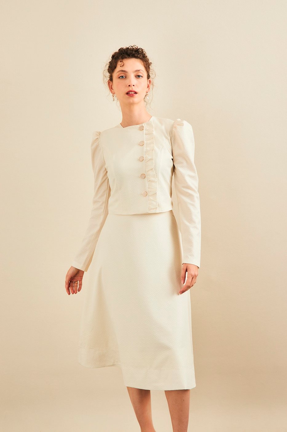 סט חצאית וחולצה ג'אקרד בז'