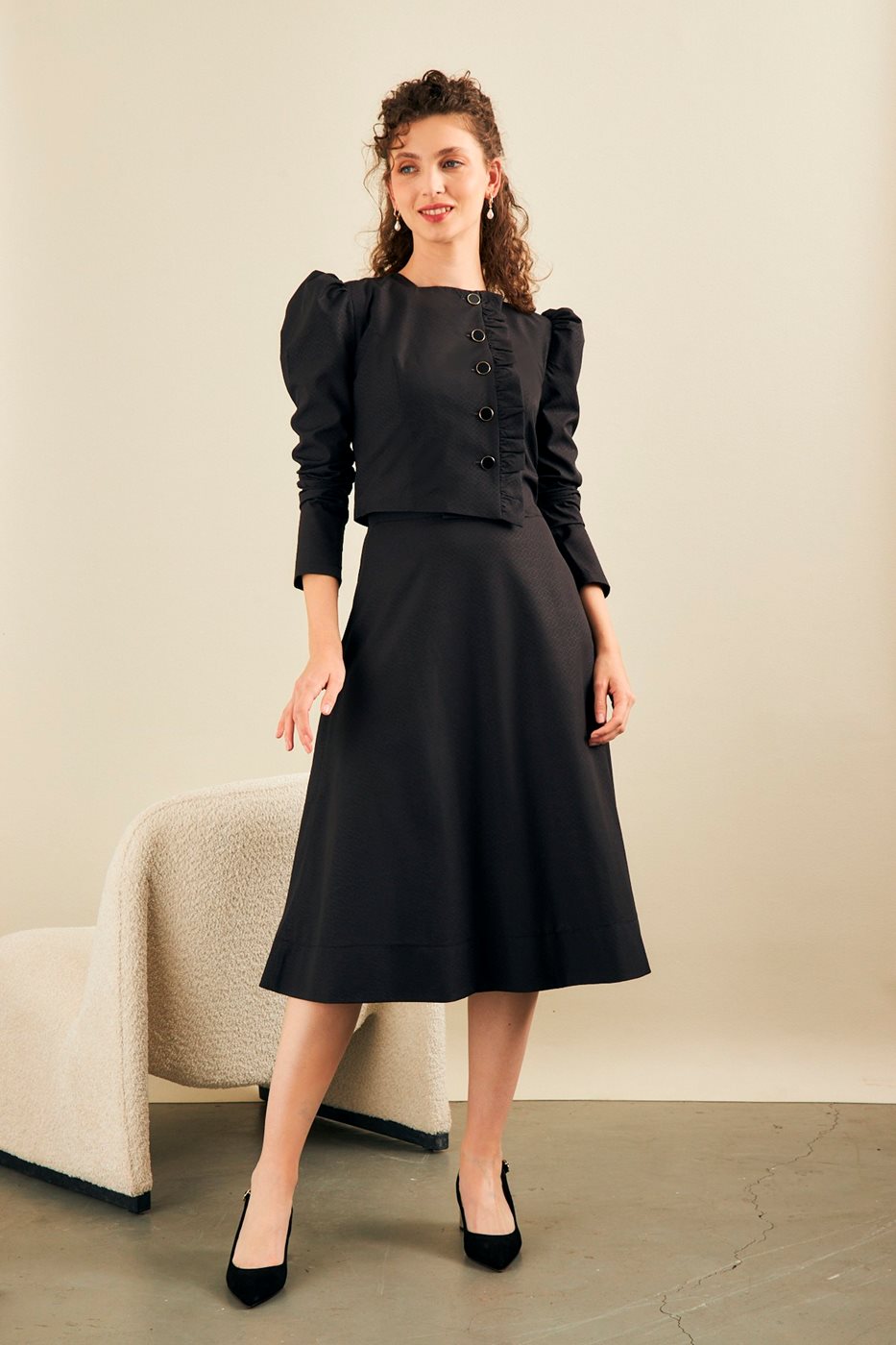 סט חגיגי במיוחד עם וולן עדין בחלק הקדמי שיוצר מראה קליל וטרנדי
